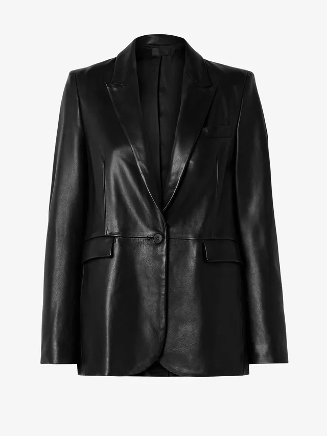 如果追求日常精緻感,合身的皮革西裝外套無疑是最佳選擇。它能從會議場切換至酒吧小酌,只需搭配挺身的白恤衫、復古牛仔褲與金色扣環腰帶,即可保持簡約型格。
