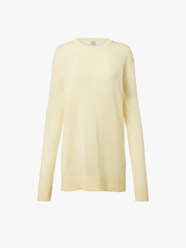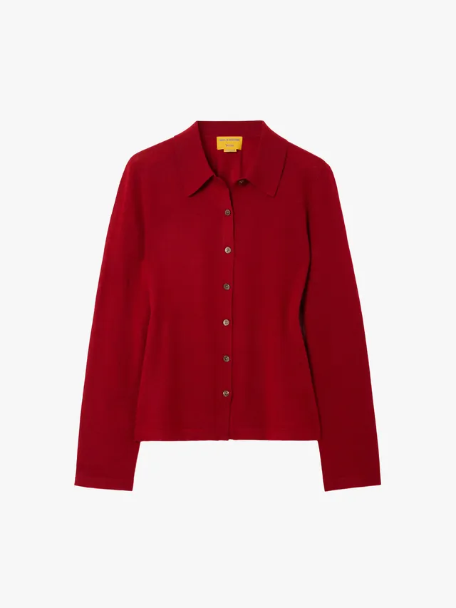 若想營造層次感與生活氣息,可從 Guest in Residence 的櫻桃紅 Polo 衫出發,披上 Toteme 極簡外套,再將 Toteme 奶油黃冷杉隨意圍裹在肩頭,以不同色彩與質地的交融,提升造型的精緻度。
