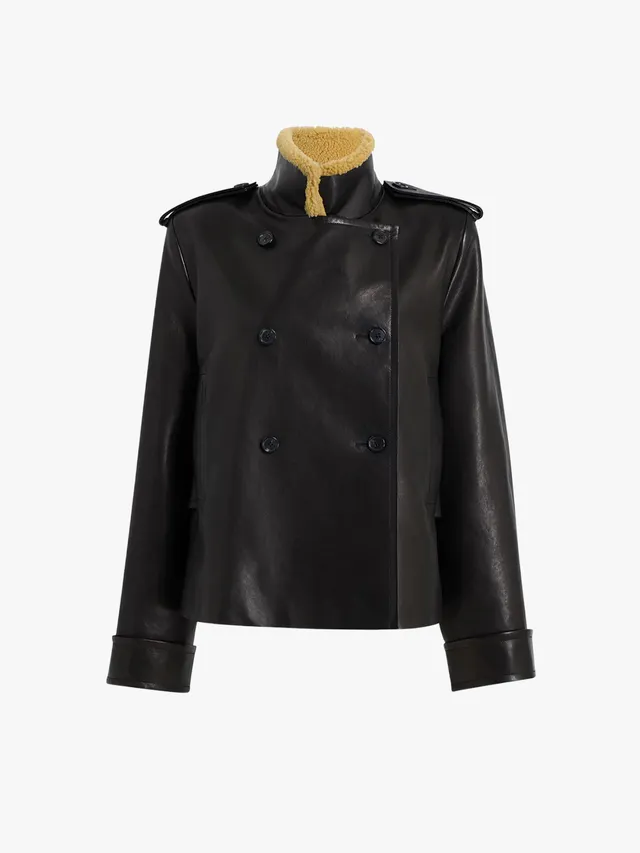 皮革和羊毛(Shearling)的組合向來是嚴冬首選,在優雅輪廓中加入溫暖的保護。這種設計靈感源自軍裝傳統,最適合搭配高領毛衣、復古牛仔褲與牛仔靴,增添西部風情。