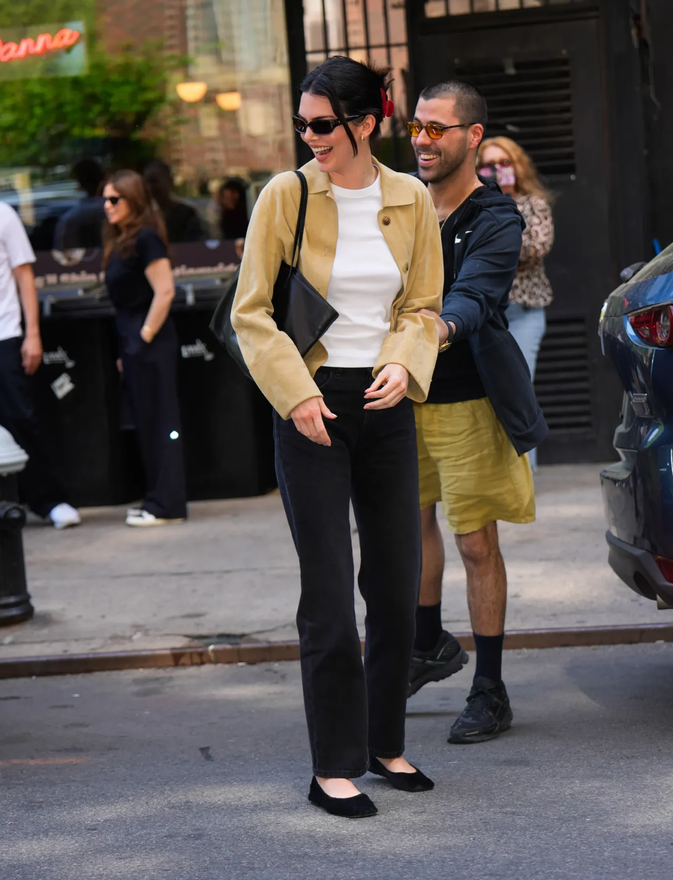 Kendall Jenner這身造型彷彿把我們帶回1995年(她的出生年份),讓人幾乎以為Brad Pitt或Jennifer Aniston會戴著窄版太陽眼鏡從轉角出現。至於這套造型的關鍵單品?當然是那毫不起眼的髮夾,以及一條質感上乘的直筒牛仔褲。