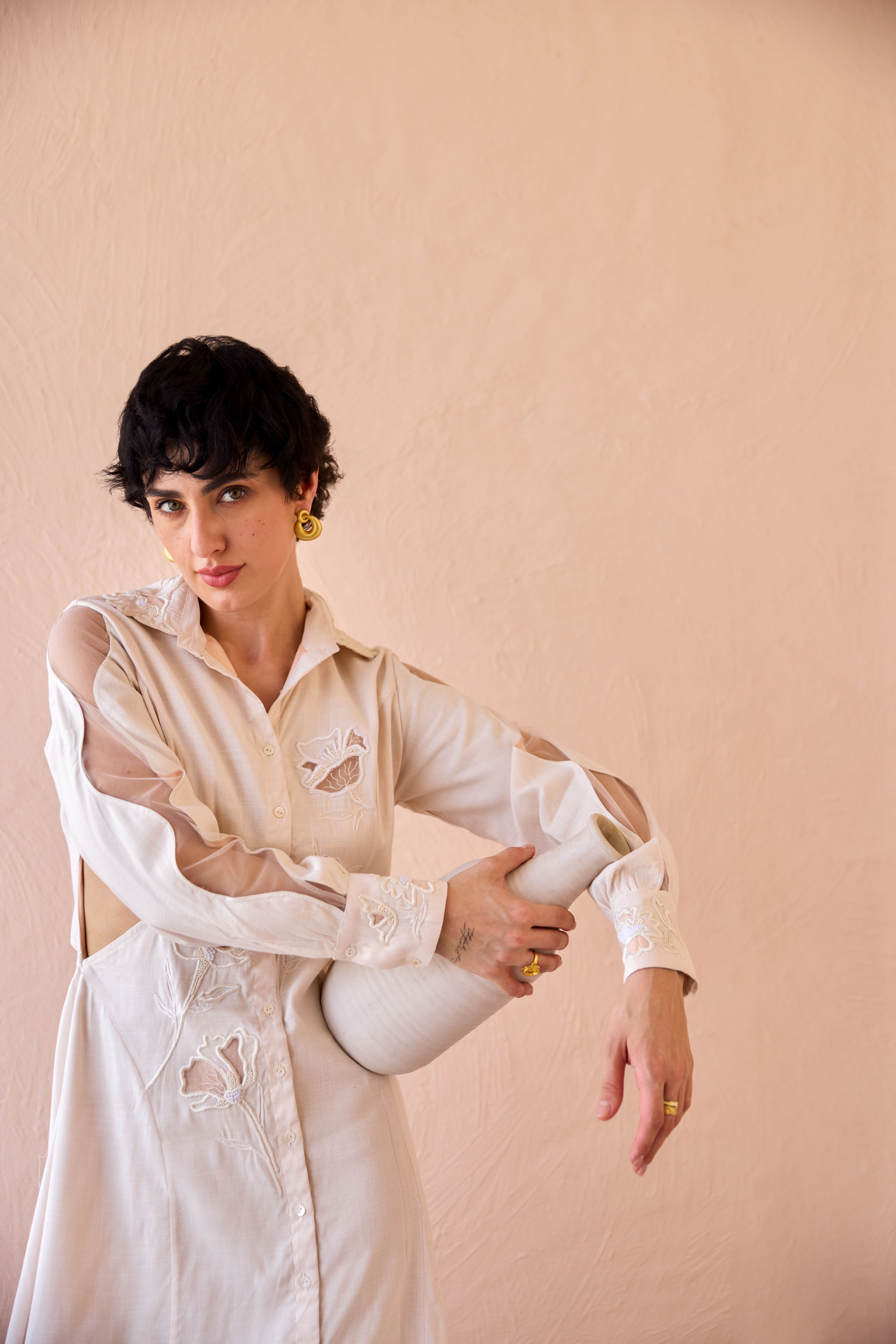 AARUSHI: 永遠都有!我們不斷受到古老技術之美啟發,並以新方式重新想像它們。我們還有許多未探索的領域和更多需要學習的知識。最近,我受到秘魯山脈、日本摺紙藝術及布料操作的技術啟發。我一直在學習,並試圖創造一種融合我對印度傳統 Chikankari 刺繡的詮釋,將其融入 Kantha 刺繡和自由刺繡(Free Hand Embroidery)。