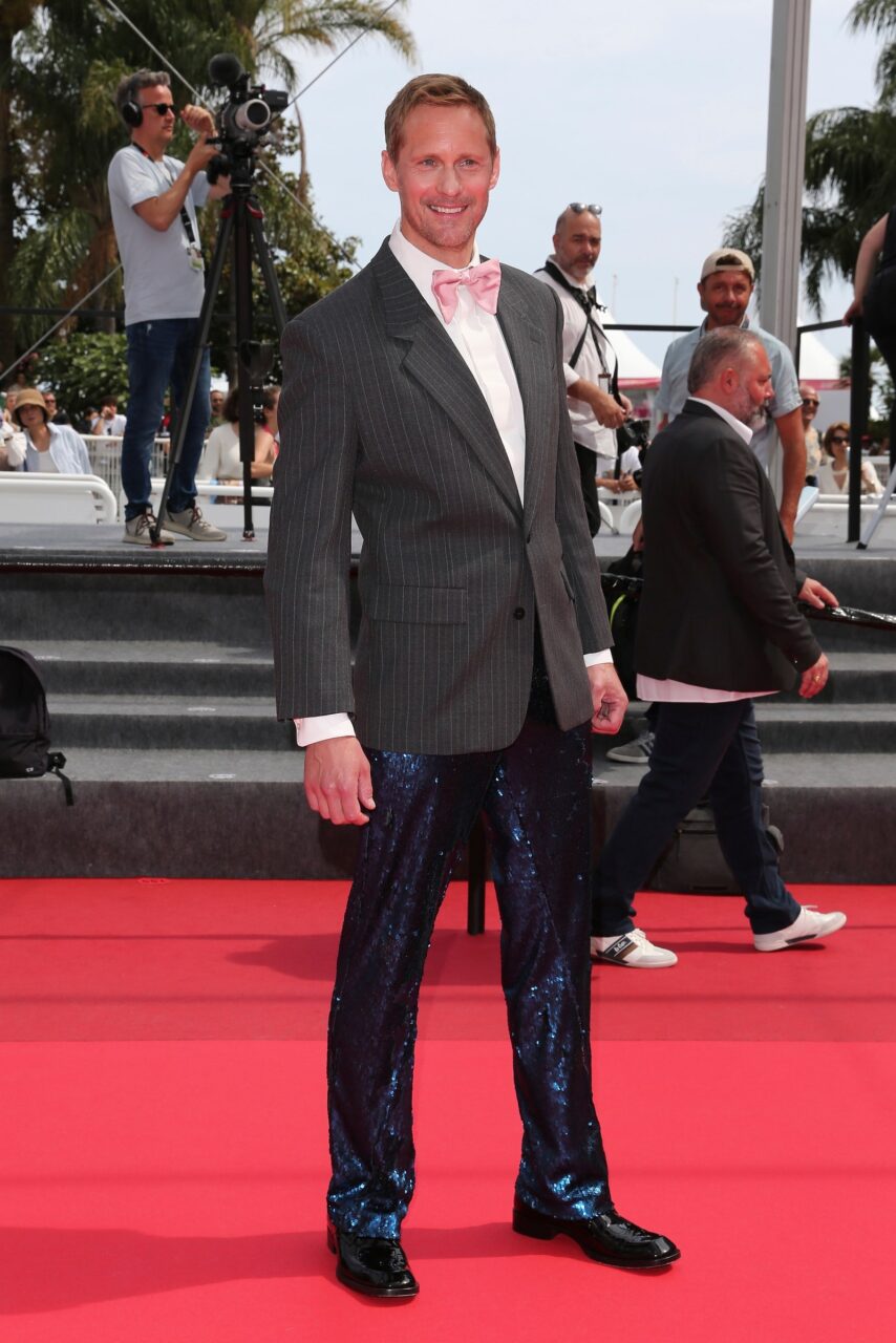 這位男演員對於在紅地毯上穿著怪異服裝並不陌生。早在他宣傳電影《Infinity Pool》時,他便曾穿上了黑色皮褲,甚至還邀請了合作明星 Mia Goth 陪他走紅地毯。甚至早在 2016 年,他就在 MTV 電影頒獎典禮上開創了不穿褲的風潮,他捨棄了褲子,僅穿了一條白色內褲。但在 2025 年的康城影展上,Alexander Skarsgård 將他對怪異事物的嗜好,提升了一個新的高度。