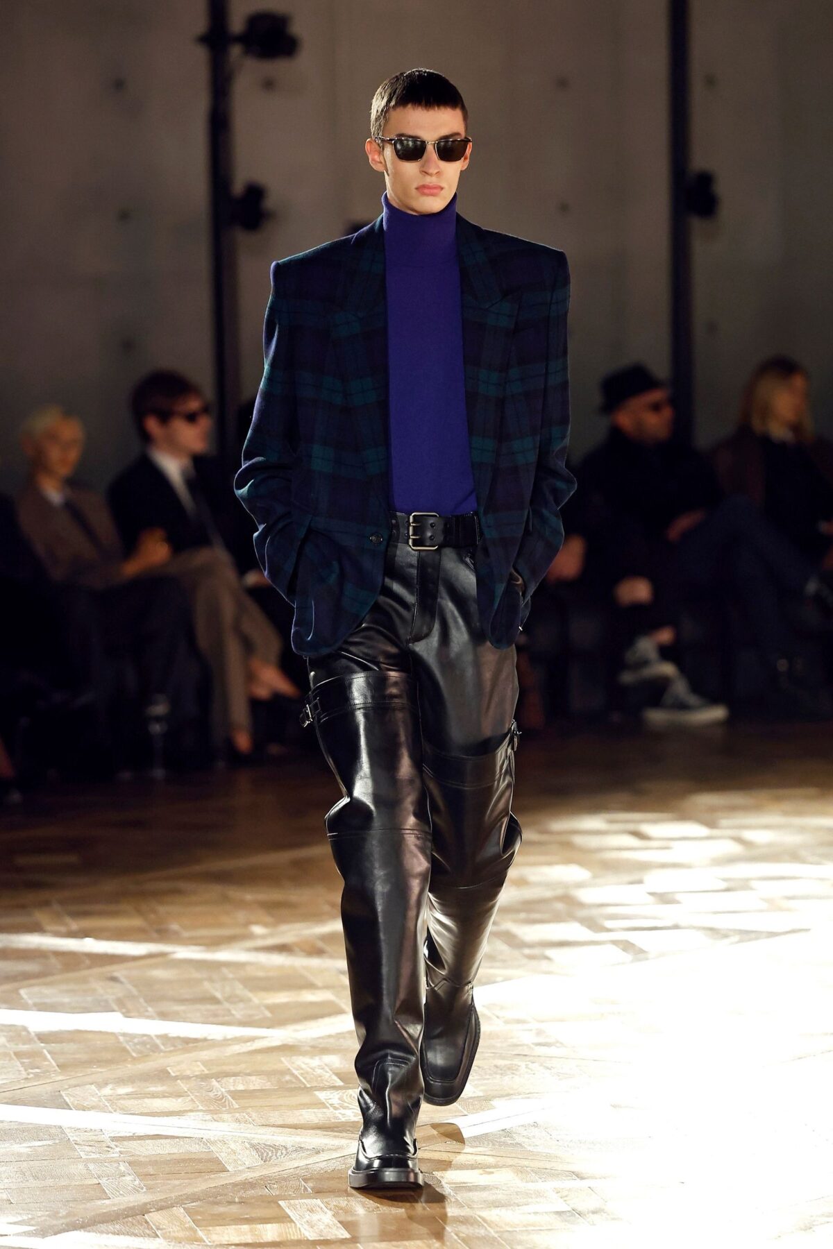 這位瑞典演員在康城的十字大道造型一點也不低調。Alexander Skarsgård 正在向他的電影《Pillion》致敬,他在其中扮演一名電單車手,與一名害羞的年輕人 (由 Harry Melling 飾)建立了 BDSM 關係。而在 Photocall 時,Skarsgård 致敬了電影情節,他身穿一件白色圓領 T-shirt,上面印著一個仰臥的男人舔皮靴鞋底的畫面——這件 T-shirt 來自倫敦南部的 Jerks。而在造型師 Harry Lambert 的造型下,他將經典的 BDSM T-shirt 與 Loewe 皮褲和黑色騎士靴搭配在一起——與 T-shirt 圖案上展示的款式很相似。