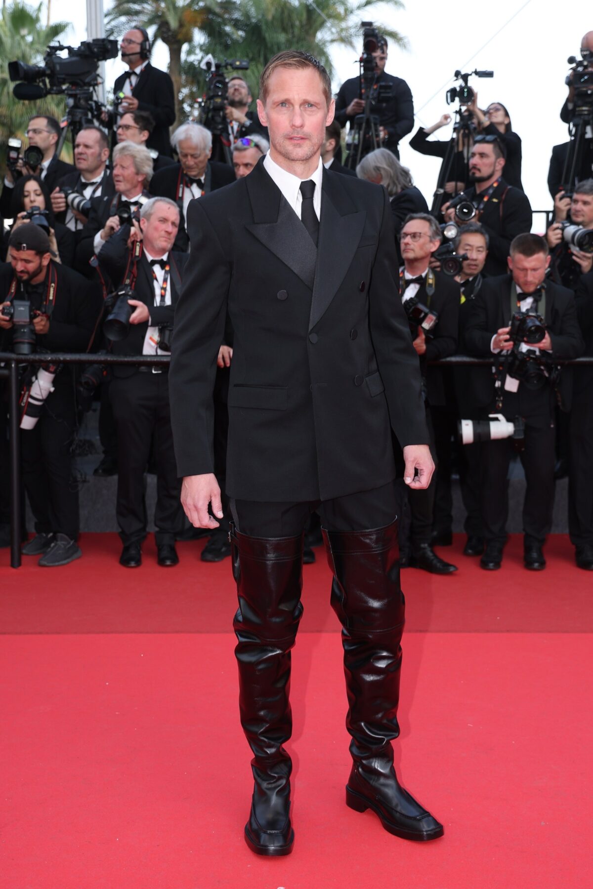 但這並不是 Skarsgård 怪異裝扮的終點。這位男演員在 Croisette 的《The Phoenecian Scheme》首映禮上,身著 Saint Laurent 雙排扣西裝,搭配了一雙高筒皮靴,表現出超凡脫俗的風格。不用說,他的顛覆性鞋款選擇很快就在網路上引起了一眾討論。