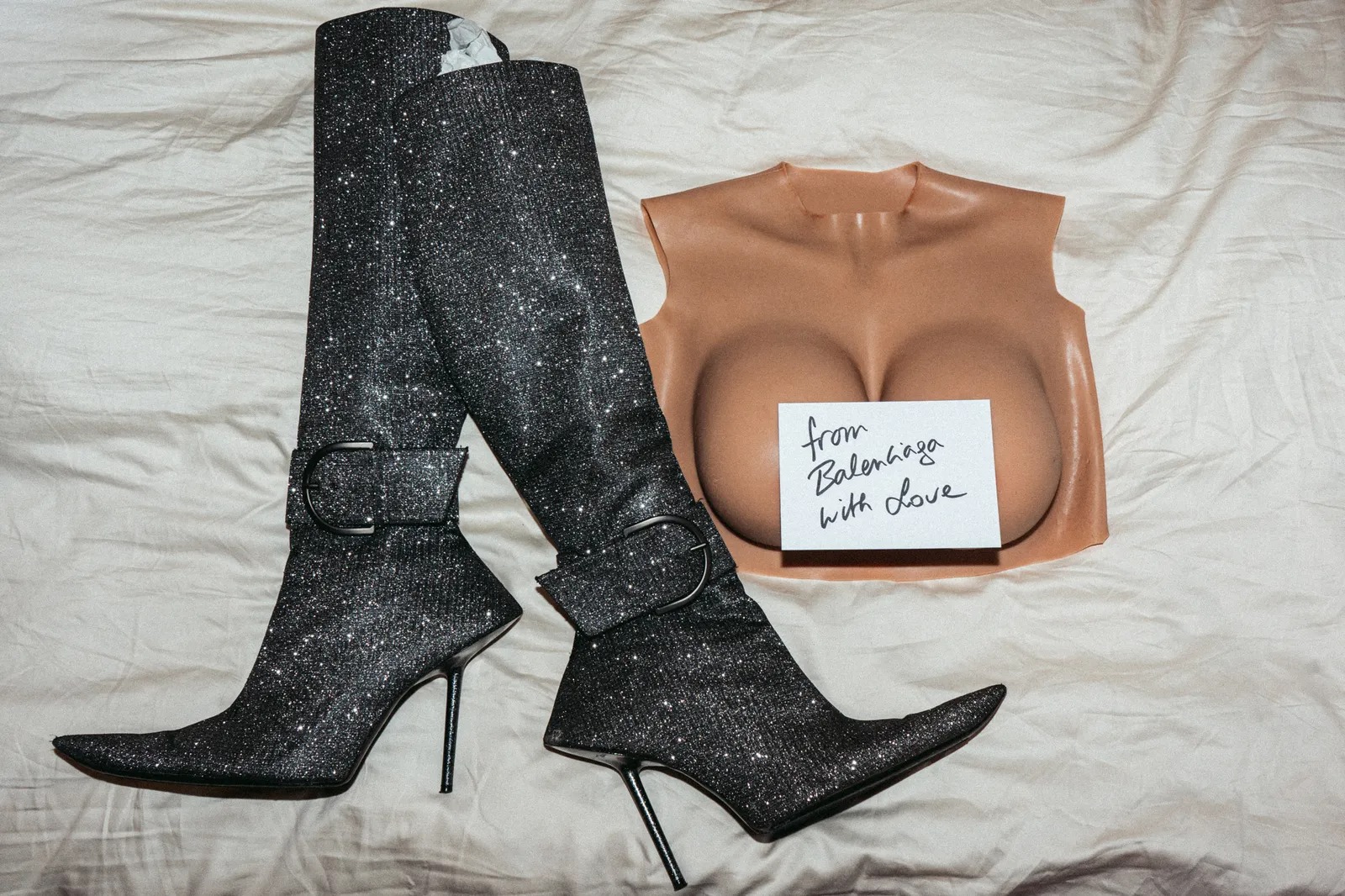 作為一名技巧相當高超的化妝師,Alexis Stone  早已以其「易容級化妝術」已扮演過無數名人,這包括她在品牌上季的時裝展場上,化身成一名時髦老奶奶 Doubtfire 夫人,令人印象深刻。而這一次她再受 Balenciaga 邀請合作,踏上了她變身 Dolly Parton 的旅程,她穿上了一件閃閃發光的銀色緊身裙以及配套的水晶靴,她為自己打造了寫着「Dolly Parton」的超長甲飾,其華麗浮誇造型非常貼近 Dolly Parton 本人的風格。