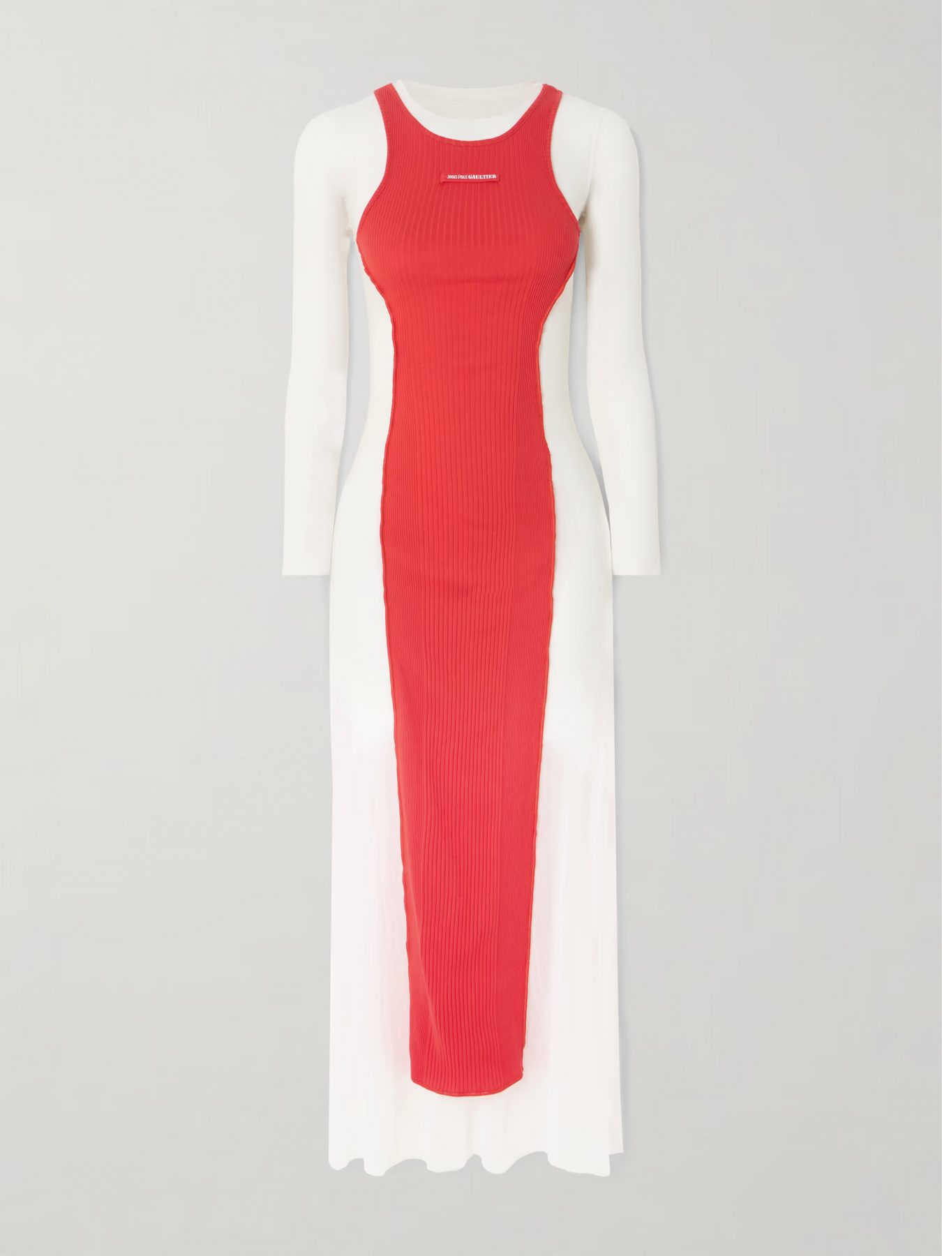 Layered ribbed cotton jersey and mesh maxi dress, Jean Paul Gaultier