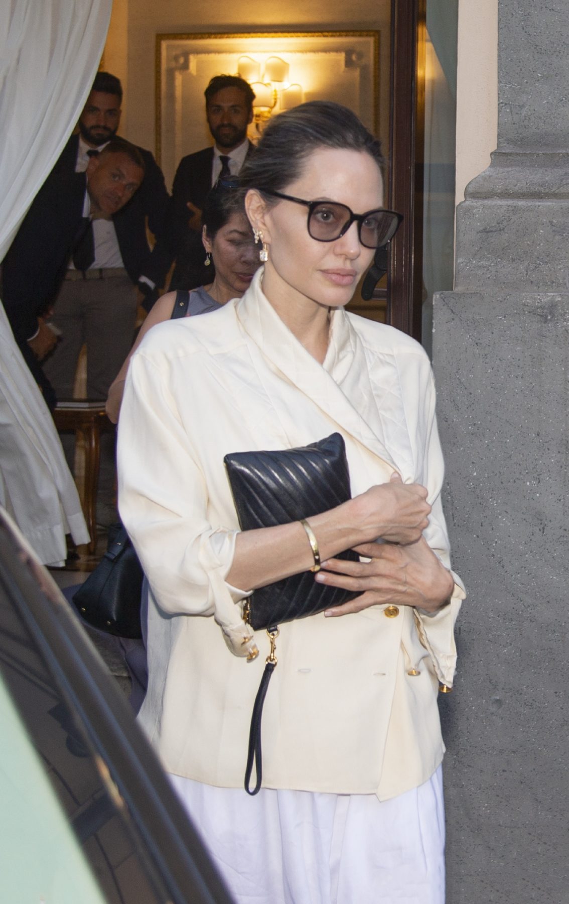 ROME, ITALY - JULY 30: Angelina Jolie is seen leaving her hotel on July 30, 2023 in Rome, Italy. (Photo by MEGA/GC Images)