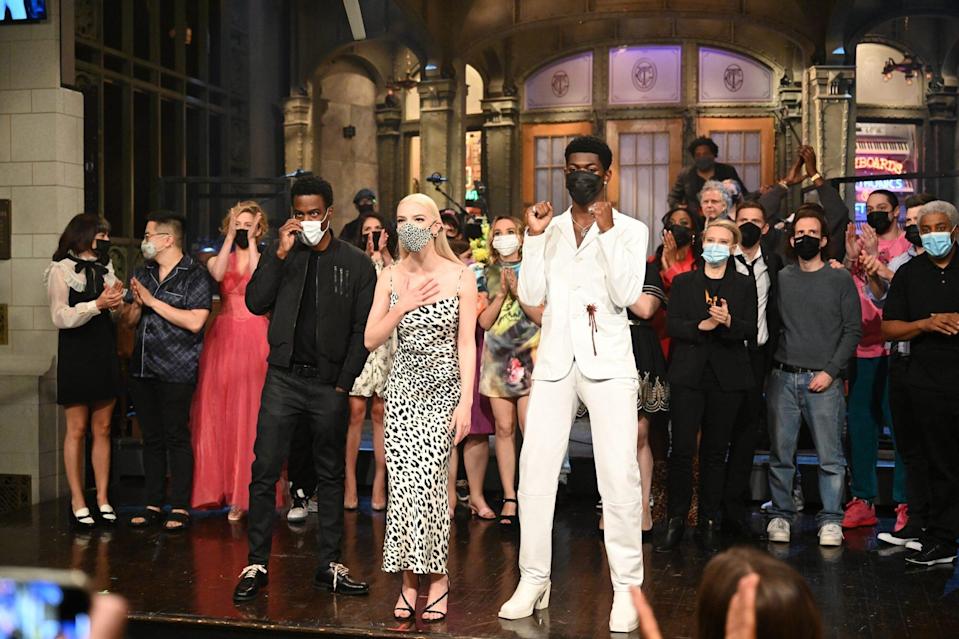 SATURDAY NIGHT LIVE -- "Anya Taylor-Joy" Episode 1805 -- Pictured: (l-r) Special guest Chris Rock, host Anya Taylor-Joy, and musical guest Lil Nas X during "Goodnights & Credits" on Saturday, May 22, 2021 -- (Photo By: Will Heath/NBC/NBCU Photo Bank via Getty Images)