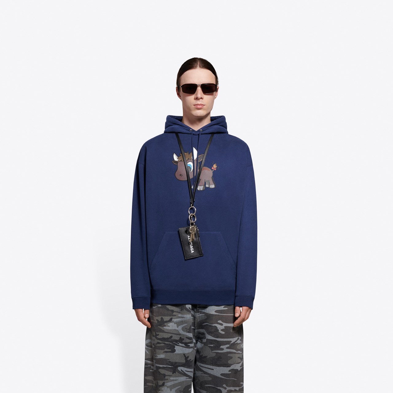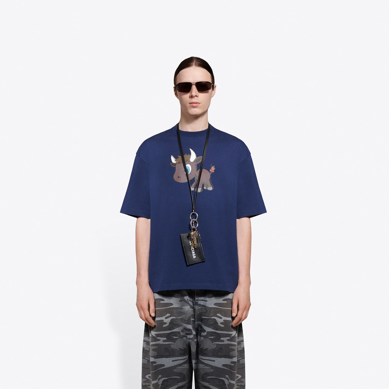 首當其衝的是卡通小牛。唯妙唯肖的圖案貫穿了整個限定系列,最具代表的是精心製造的疊層皮革鎖匙扣。它亦出現於服裝上,搭配螢光綠和深藍色,實在讓人眼前一亮。但意料之外的是 Balenciaga 竟然推出那麼可愛的設計,與品牌過往的風格形成強烈的反差感。