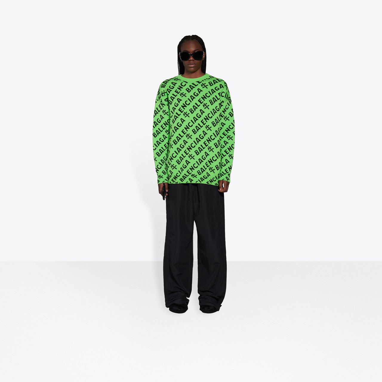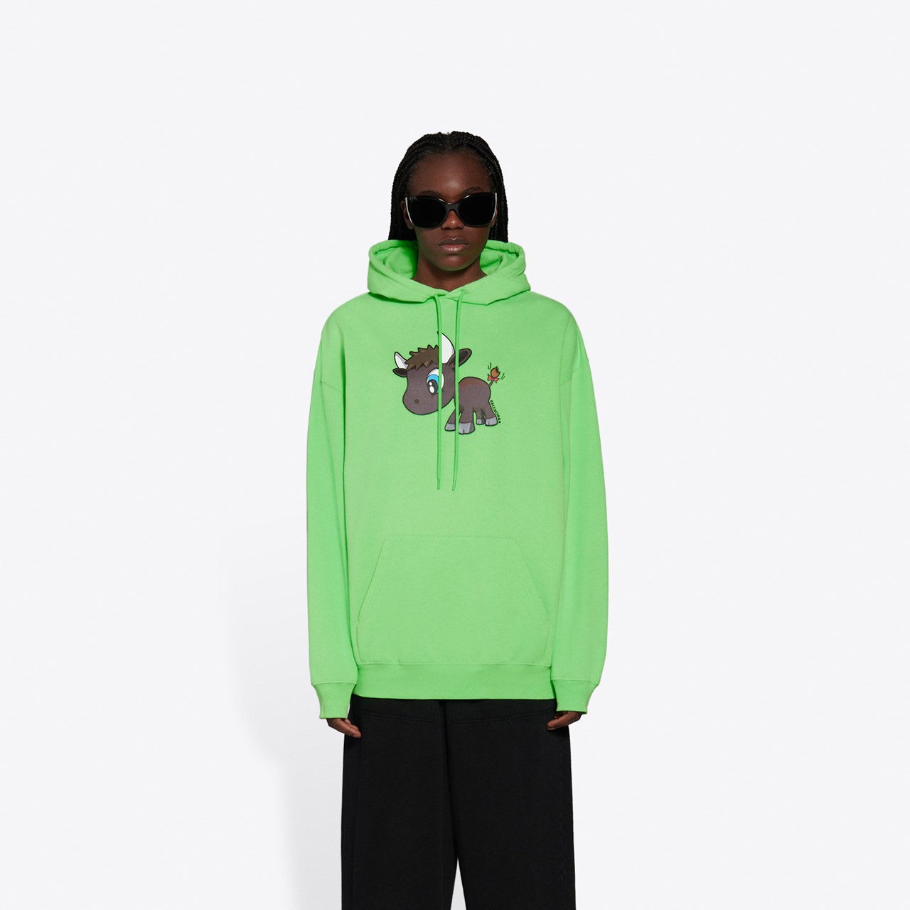 除此之外,「 Baleciaga 牛」同樣地出現於成衣上,不論是黑白配色,抑或是螢光綠搭配黑色,這視覺衝擊的撞色設計也能點綴日常穿搭。