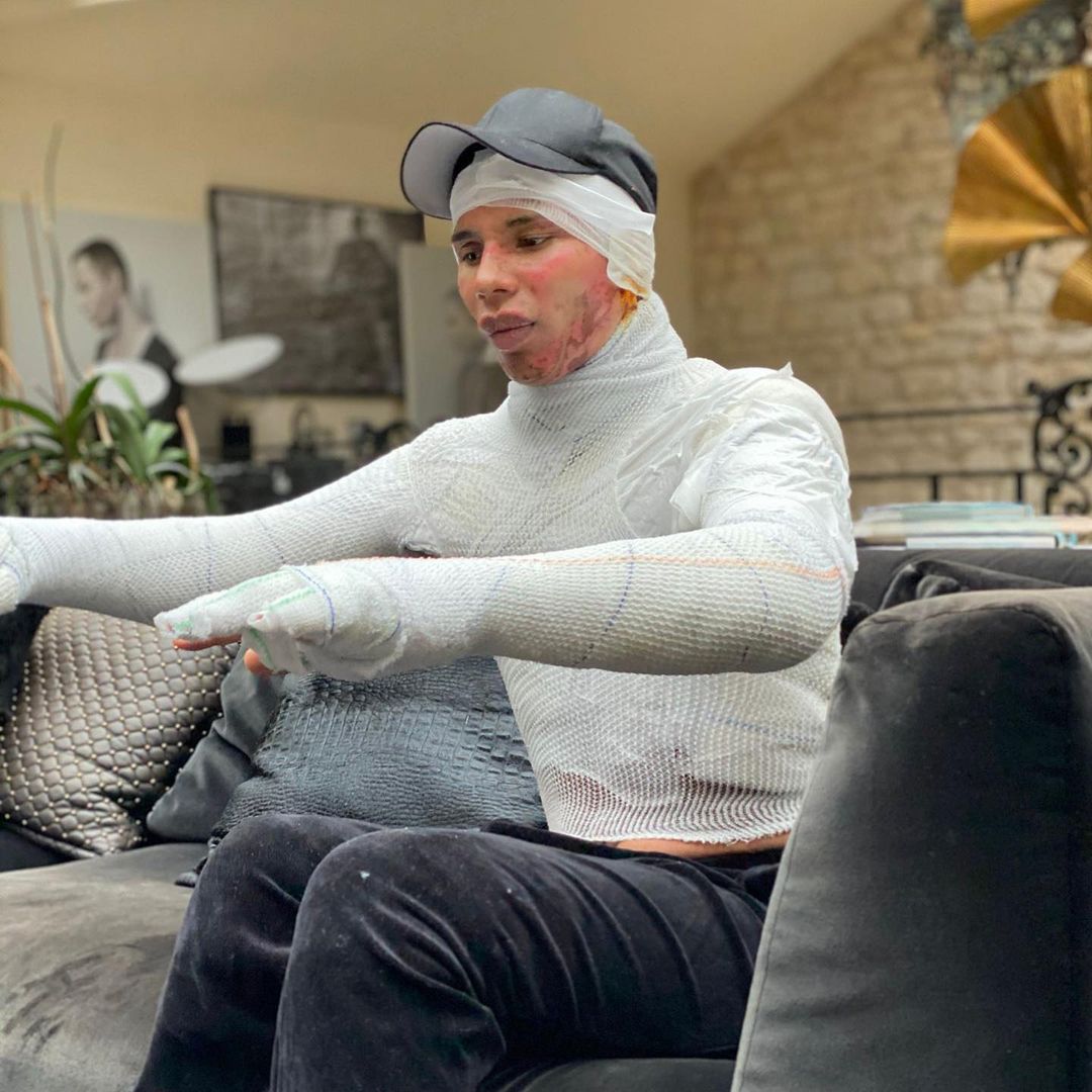 Olivier Rousteing 在Instagram 帖上一張全身纏上繃帶的照片,那是他年前因為家中火爐爆炸被燒傷後的照片,當中清𥇦可見面部的傷痕。他謂現在是意外後的剛剛一年,當時正值疫情非常嚴峻的時後,意外後在醫院中醒過來,幸得到很多醫生、護士在如此艱難的日子中依然對他照料有加,令他可以在一年內完全康復過來。