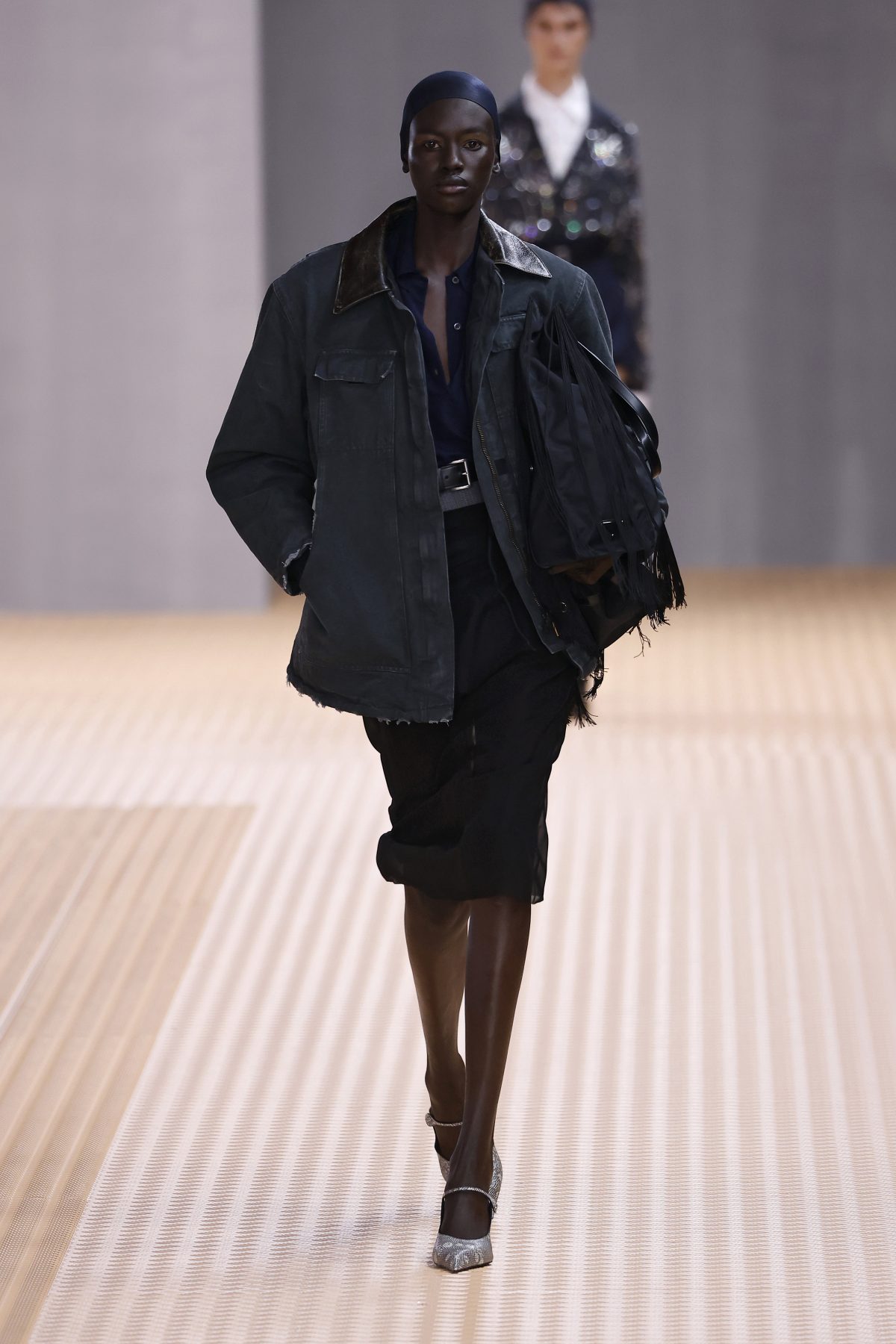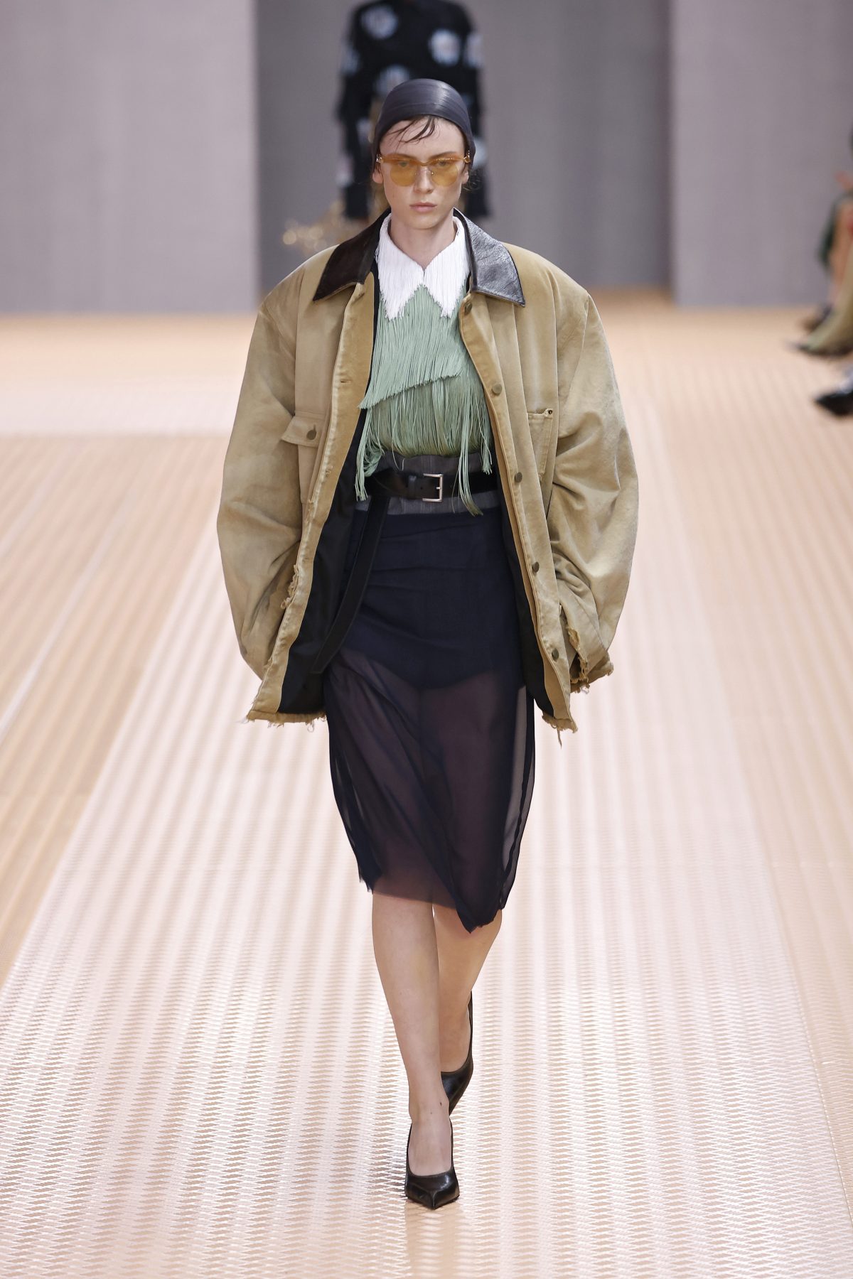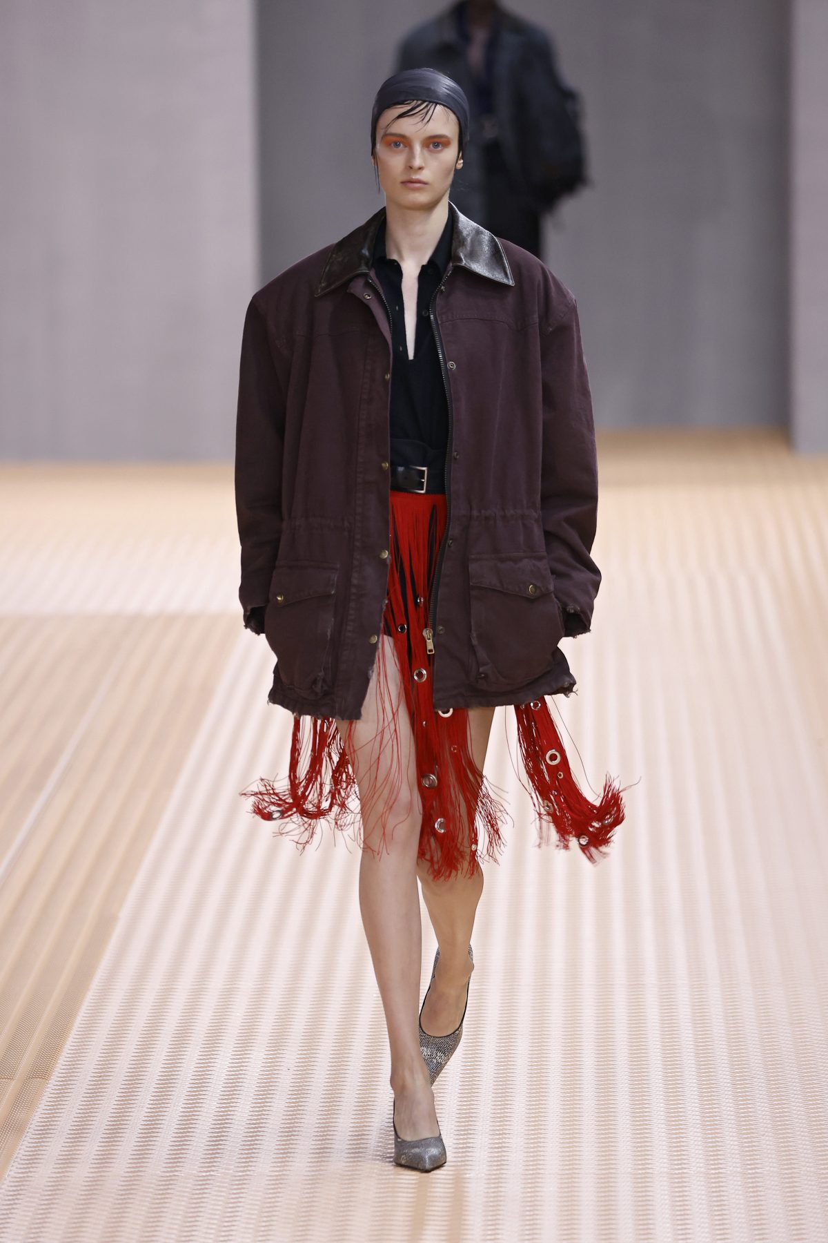 Barn Jacket穿搭技巧#1:像Prada一樣與半身裙混搭
