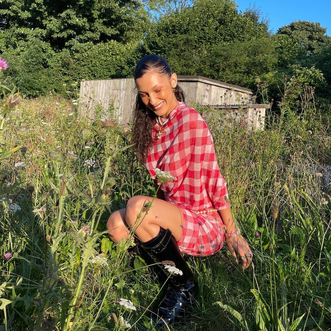 Bella 在最近一次出行,穿上了一條早期流行的裙款,搭配着駝色吊帶衫和一雙黑色皮靴——以她對所有復古事物的偏愛而聞名,來自她最喜歡的倫敦 Depop 商店 Susamusa。 事實上,最近幾個月有人發現她穿著許多來自該品牌的單品,其中包括 8 月份由 90 年代布料製成的兩件式單品。