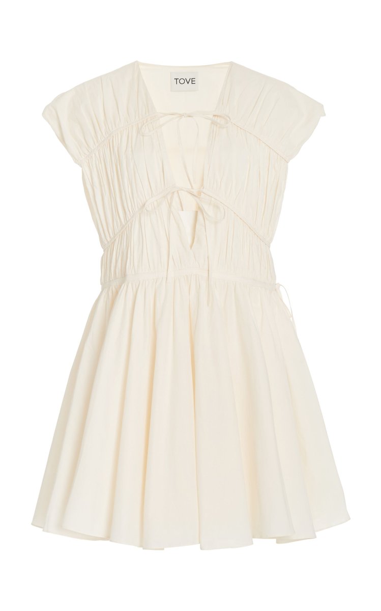 如果你喜歡較短的下擺,那麼選擇Farm Rio的蓬蓬袖迷你連衣裙或Tove的Clara連衣裙,其標誌性的領帶細節是不會錯的。