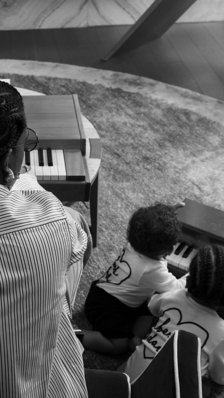 其中一張照片捕捉了A$AP Rocky舉起他最小的兒子並親吻他的前額;另一張照片展示了男孩們在一架玩具鋼琴前、A$AP Rocky則在旁以鍵盤演奏的畫面。