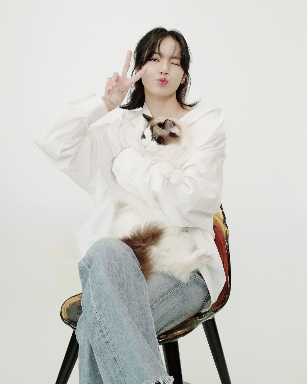 Blackpink Lisa 向來是一名不折不扣的「貓奴」,她近日上載身穿 Celine 牛仔褲與 Celine 16 手袋的街拍照,早前還與自己的貓咪進行首次的硬照拍攝,其穿上 Y/Project 的白色 collar shirt 與友好品牌 Celine 的淺藍色牛仔褲,散發一種優雅氣質,時而性感,時而活力非凡,果真是百變女王,亦相信這位「帶貨女王」很快就令這些單品清空起來。