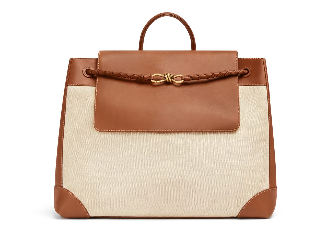 新版 Andiamo 以淺啡色配搭米白色的設計,備有小型及大型款式可供選擇;繼續經過嚴謹的工藝及精挑細選的物料所打造,如源自法國的 Bristol 小牛皮經過獨特的造舊、洗水和手擦處理,令皮革擁有自然的外觀,同時結實筆挺、觸感柔軟;帆布袋身則非常耐用,與柔軟的皮革形成鮮明對比;同時保留了 Andiamo 最標誌性的黃銅金屬結固定手袋的編織皮帶,令 Andiamo 手袋可以作靈活調整,化作肩袋或斜揹袋等不同用法。