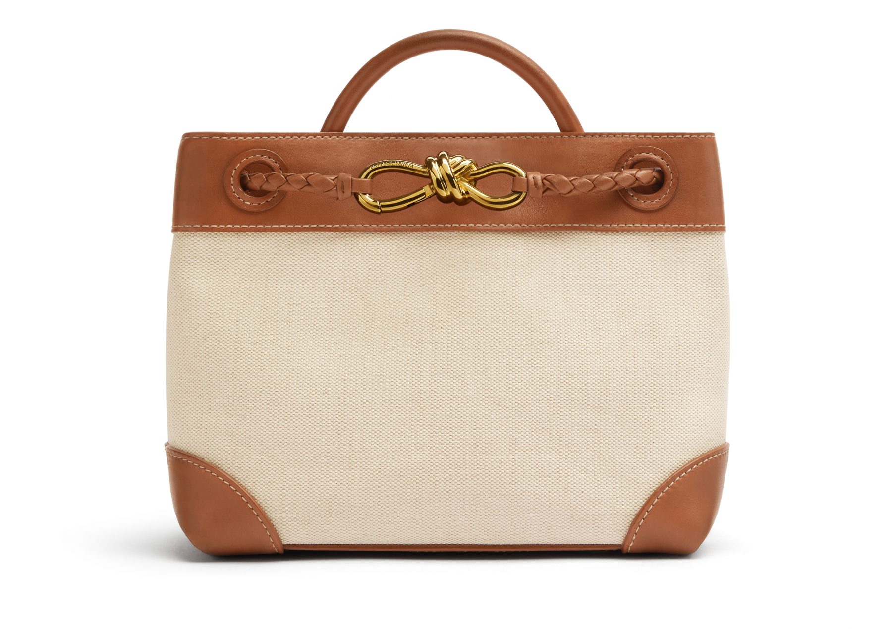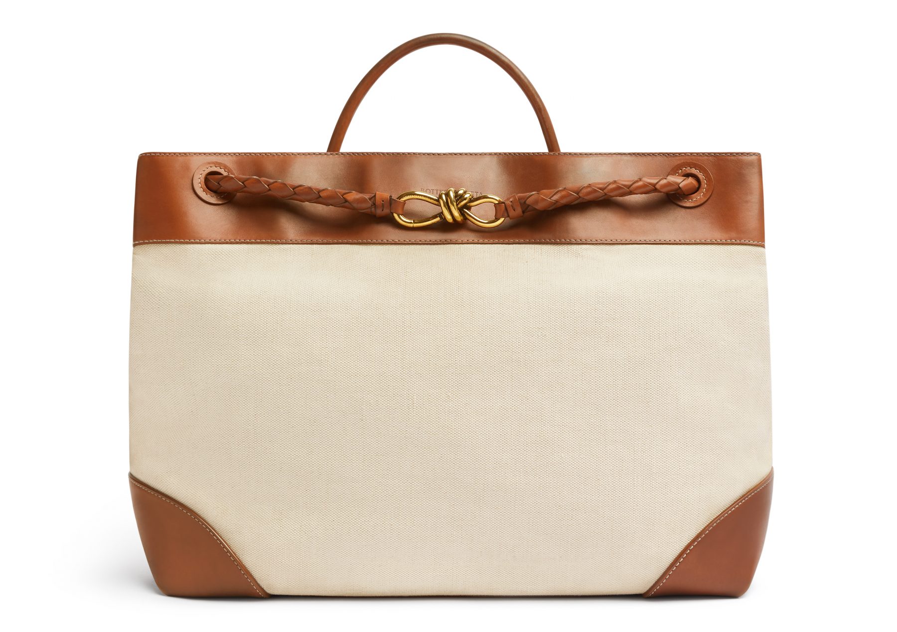 新版 Andiamo 以淺啡色配搭米白色的設計,備有小型及大型款式可供選擇;繼續經過嚴謹的工藝及精挑細選的物料所打造,如源自法國的 Bristol 小牛皮經過獨特的造舊、洗水和手擦處理,令皮革擁有自然的外觀,同時結實筆挺、觸感柔軟;帆布袋身則非常耐用,與柔軟的皮革形成鮮明對比;同時保留了 Andiamo 最標誌性的黃銅金屬結固定手袋的編織皮帶,令 Andiamo 手袋可以作靈活調整,化作肩袋或斜揹袋等不同用法。