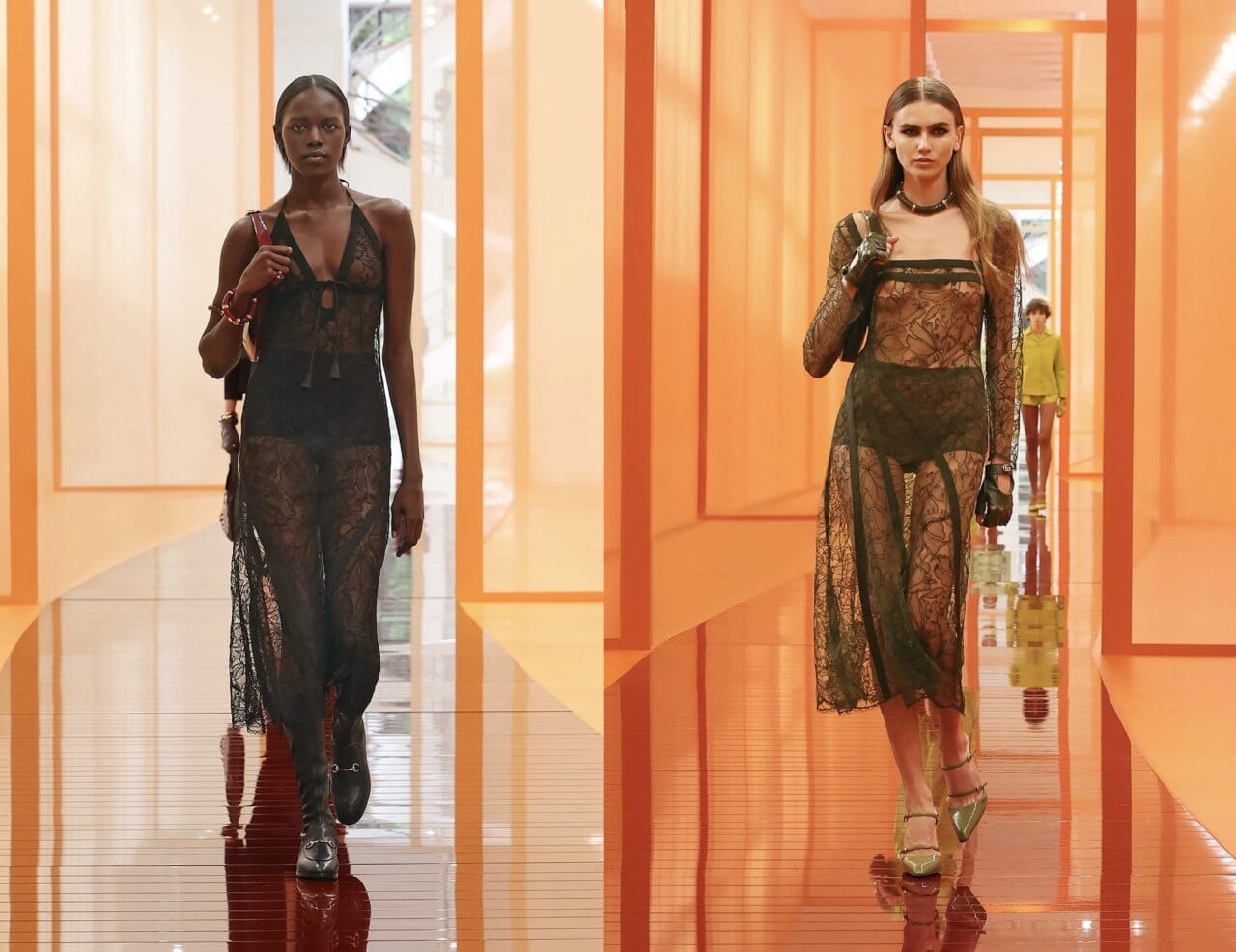 不過說到底,服裝是一件單品,你怎樣穿和如何搭配就看你想呈現什麼風格。就算是一套經典性感內衣,也能靠造型增添中性韻味,Balenciaga的春夏系列就示範了品牌相對女性化的喱士內衣穿搭,加一副太陽眼鏡和線條銳利的尖頭鞋,積極打破大眾對物料的固有認知。