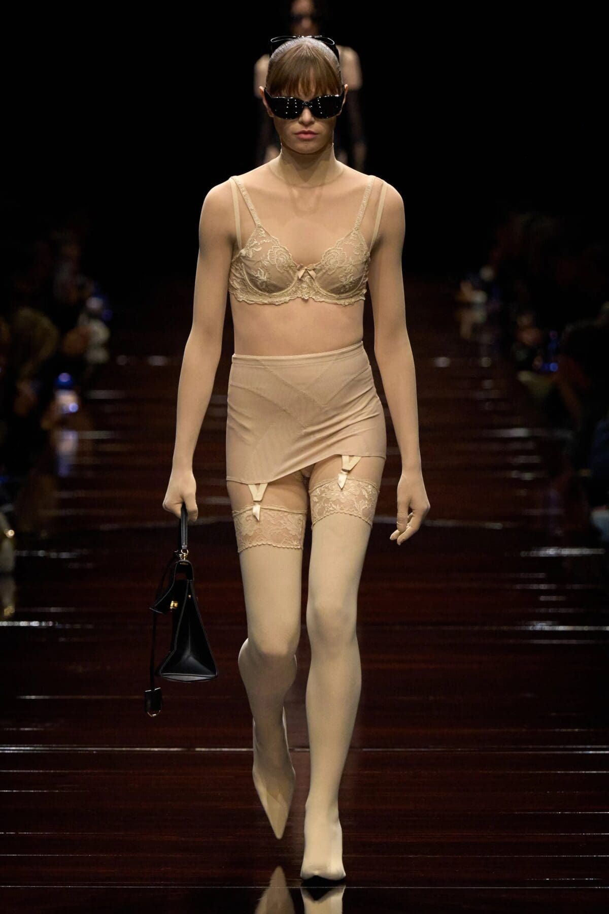 不過說到底,服裝是一件單品,你怎樣穿和如何搭配就看你想呈現什麼風格。就算是一套經典性感內衣,也能靠造型增添中性韻味,Balenciaga的春夏系列就示範了品牌相對女性化的喱士內衣穿搭,加一副太陽眼鏡和線條銳利的尖頭鞋,積極打破大眾對物料的固有認知。