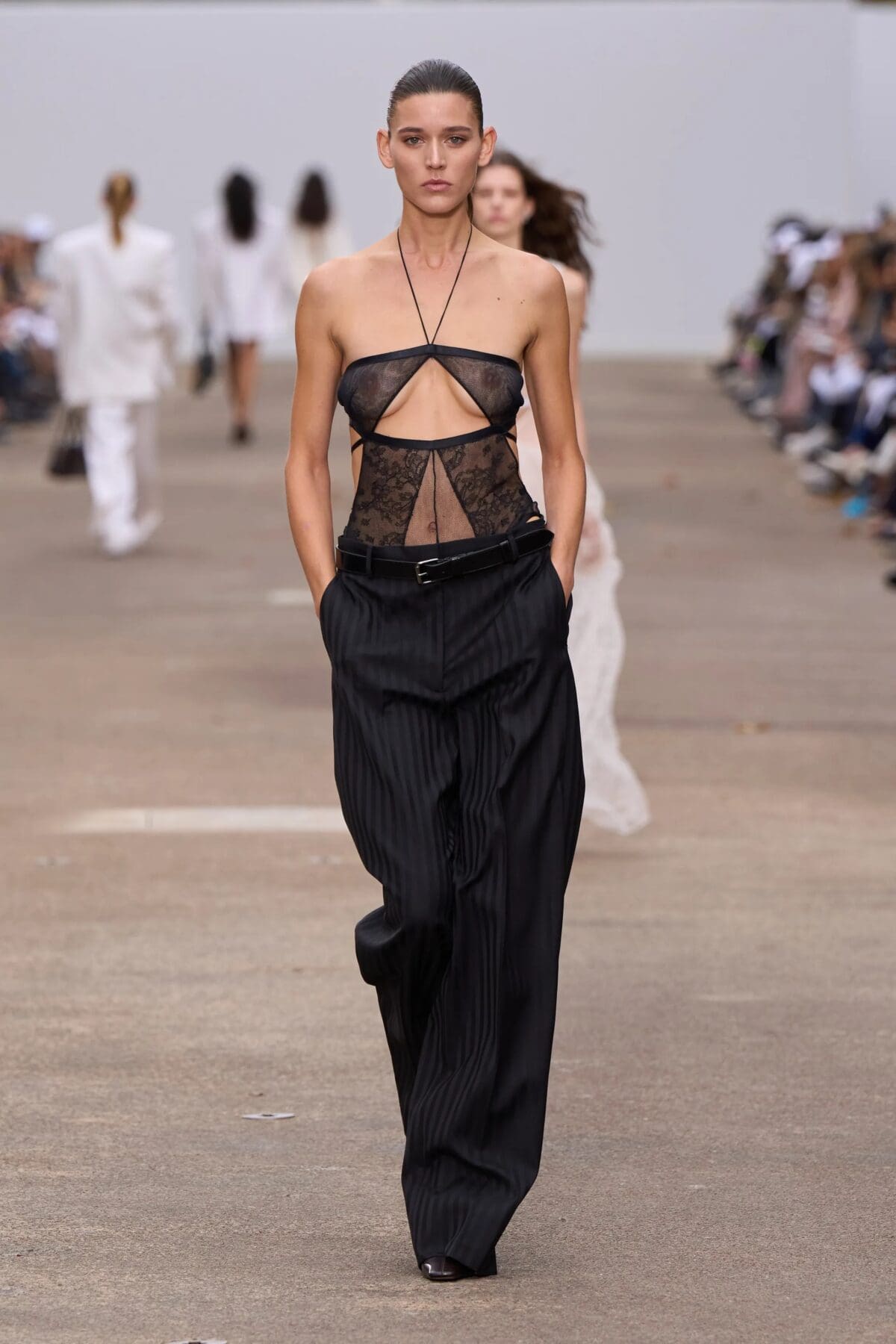 Boudoir可以是一個服裝種類,也能是風格元素。2025春夏時裝騷中,3.1Phillip Lim和Balenciaga分別設計了黑白拼色的緞面而且有喱士裝飾邊的造型,簡約拼色為造型增加一點型格和復古味道,同時保留內衣的私密感。