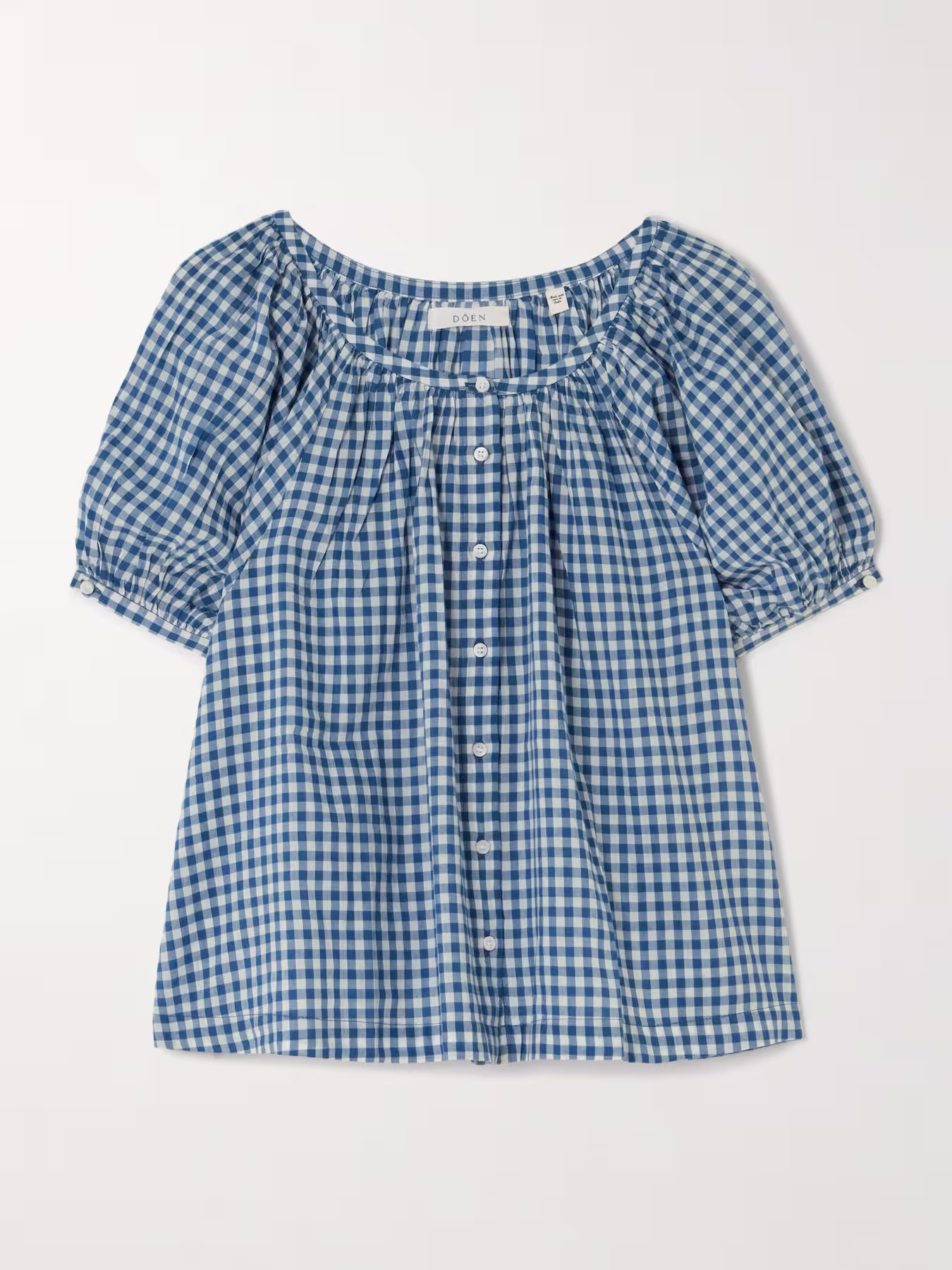 DÔEN June Gathered Gingham Organic Cotton Blouse