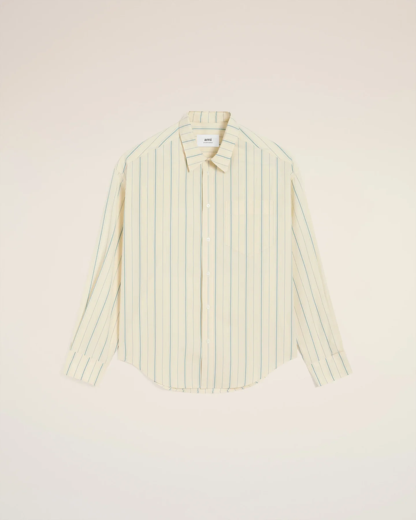 Ami Beige Cotton Ami De Coeur Boxy Fit Striped Shirt