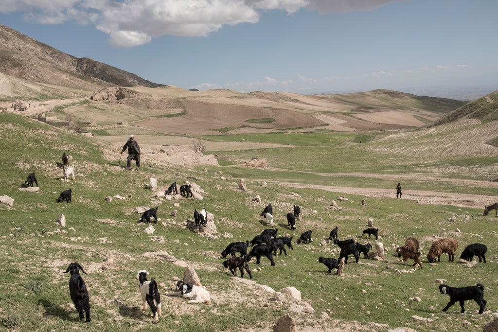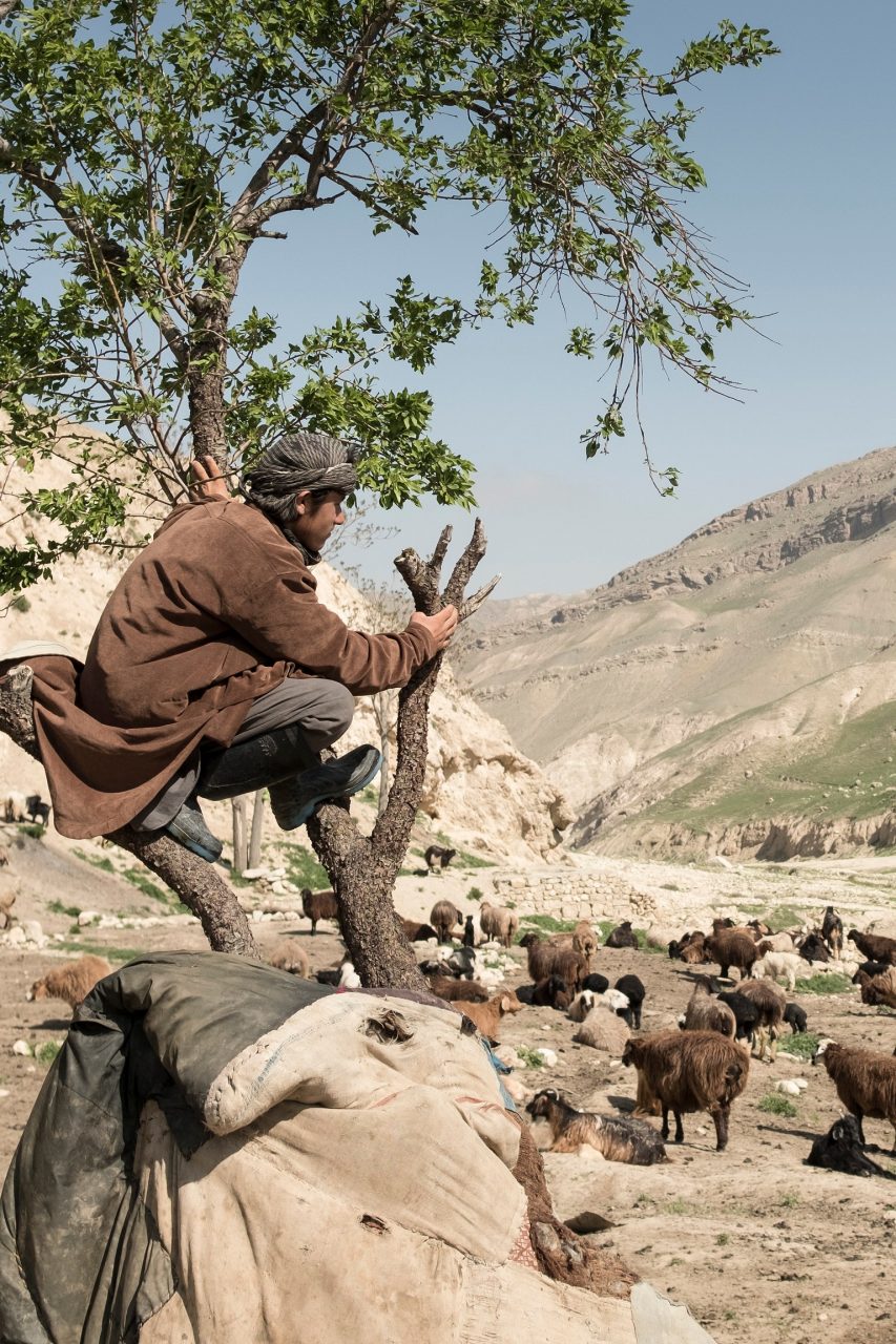 牧民阿米爾沙赫在亞卡塔爾村的墓地上照顧他的山羊。 © Joel van Houdt for Burberry。