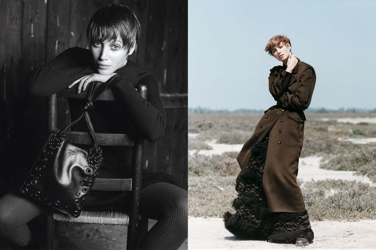 過去30多年,Miuccia Prada 一直將獨特的品味與意大利1960年代的標誌式剪裁融合,塑造成獨特的 Prada 風格歌頌每個年代的女性美。多年來品牌廣告從黑白照到2000年代的高對比彩色照片,都演繹着不同年代的女性故事,更由 Steven Meisel、Peter Lindbergh 等大師級攝影師拍攝,每張廣告都成為如今讓人難忘的經典之作。