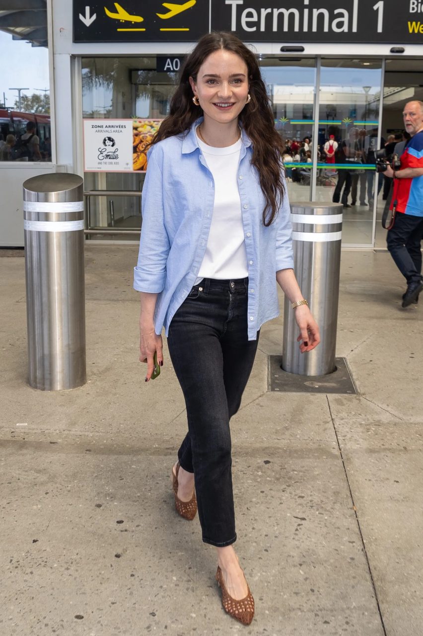 如果一件外套在夏天感覺太重,可以像 Aisling Franciosi 那樣做,輕輕地穿上一件沒扣鈕的襯衫。