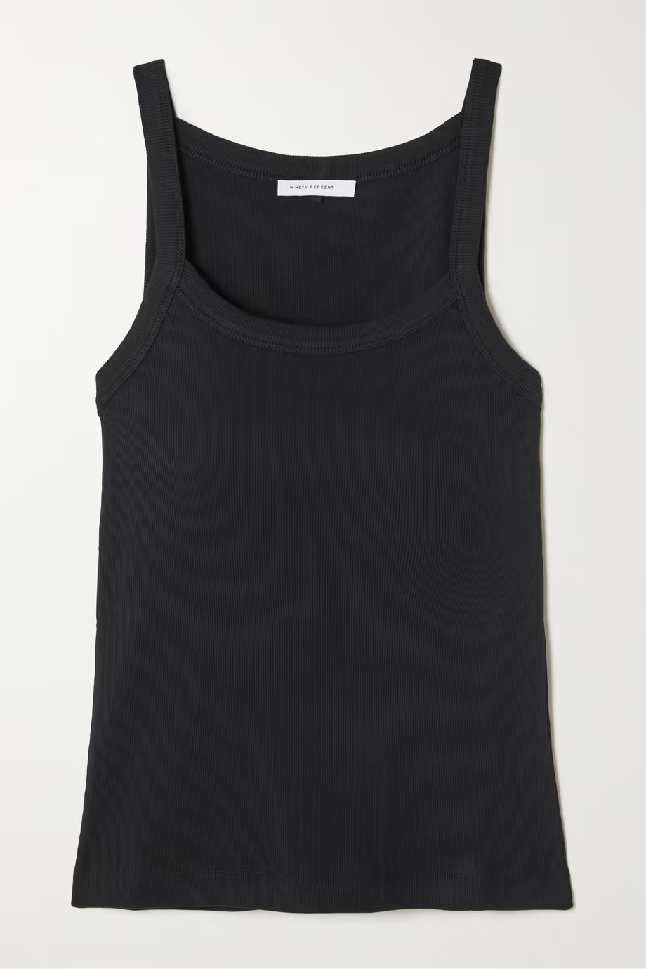 沒有甚麼比穿起一件輕薄背心更清涼休閒,像 Bella Hadid 選擇一身全黑造型,配上復古太陽眼鏡更顯低調而型格。