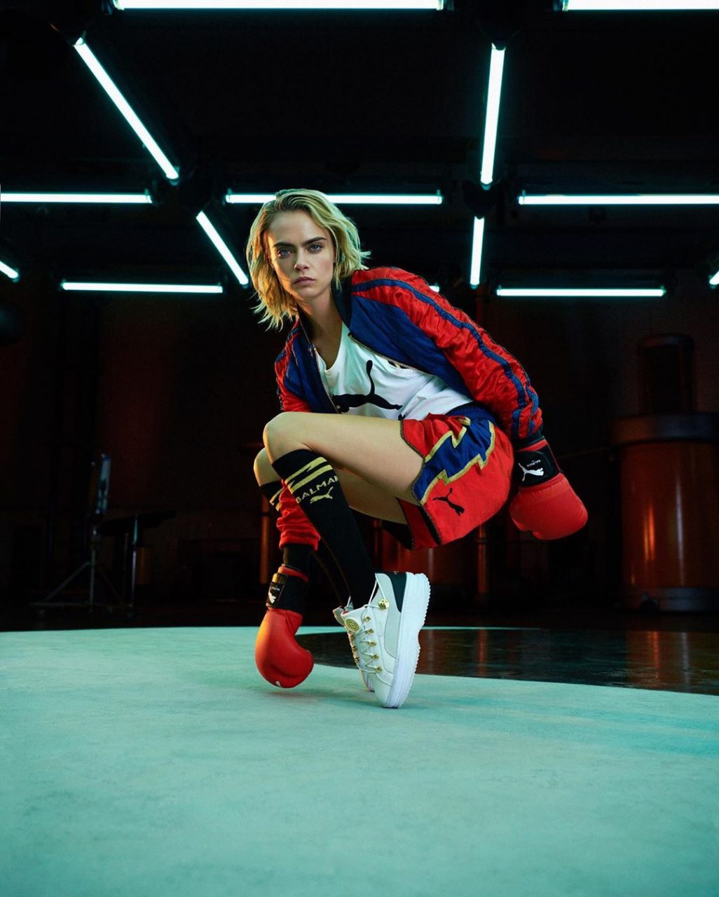 仔細想想這兩人的特質確實都有幾分相似,一個渴望走出自己風格的設計、一個對多樣性的包容與堅持。雖然這是兩人並非第一次合作,對上所設計的三款 Balmain 絎縫手袋設計,而今次算是首次合作設計成衣,讓 Balmain 進軍街頭風格的主流市場。回想起 Cara Delevinge 在2016 年首次為 Puma 設計德國運動用品產品,並拍攝 “Do You” 廣告為全球女性權力給予支持。當年 Cara 在雨中揮灑拳擊動作以展示女性力量的效果,而今年湊巧以拳擊為主題設計 Puma x Balmain 系列,完全互相呼應。