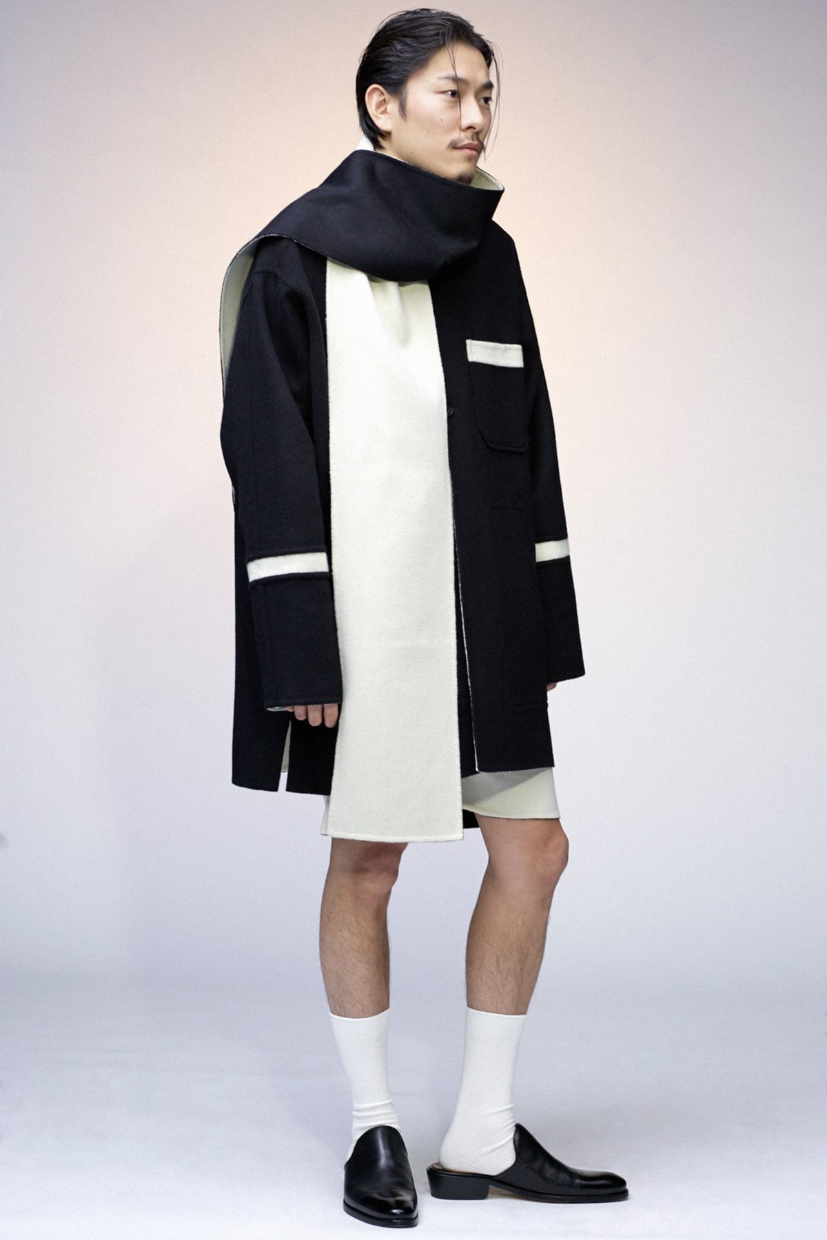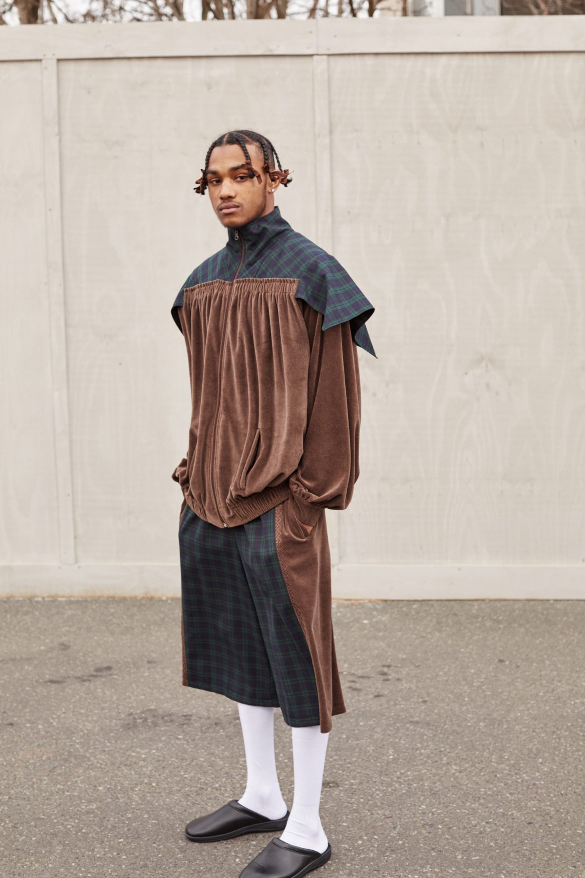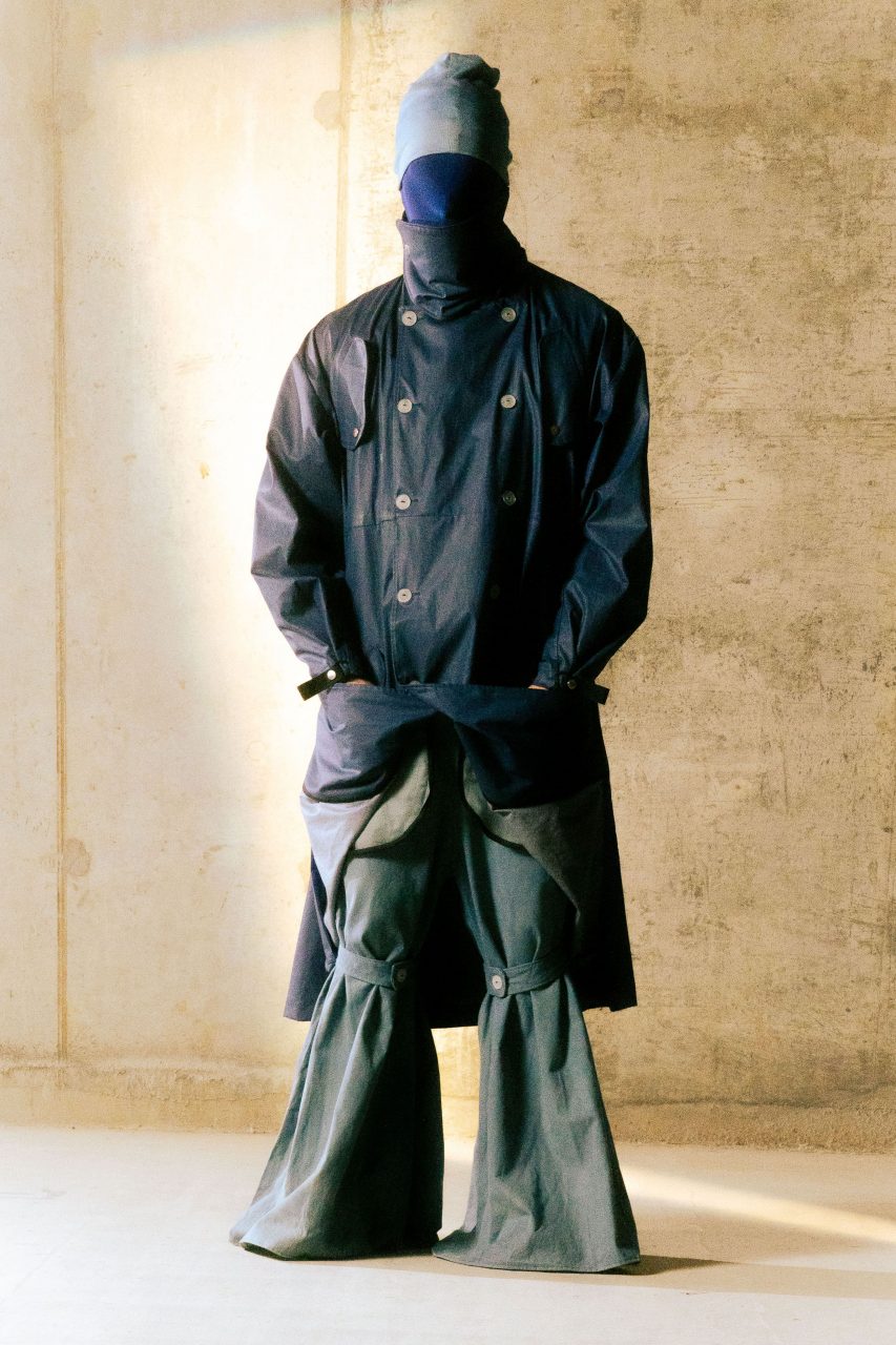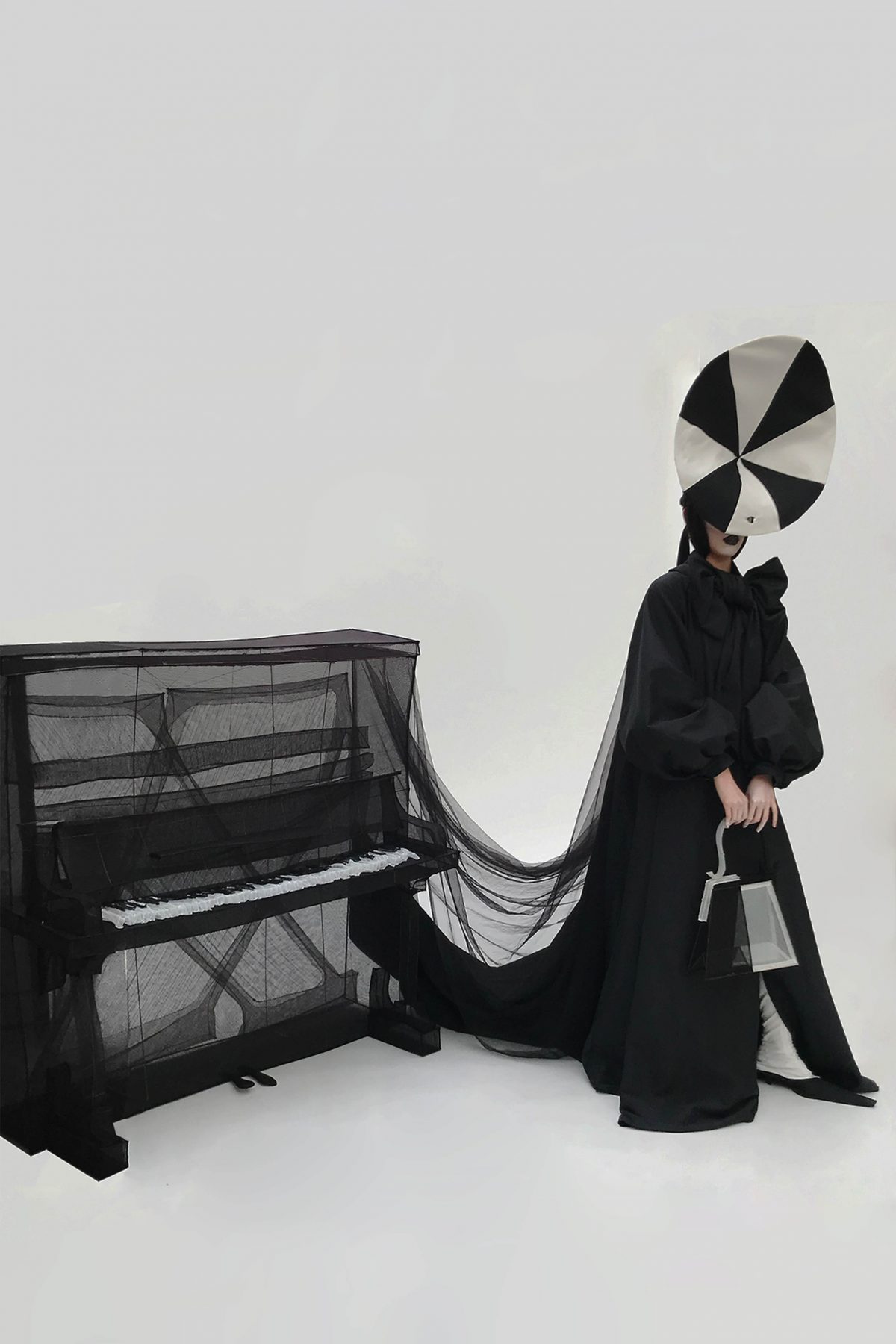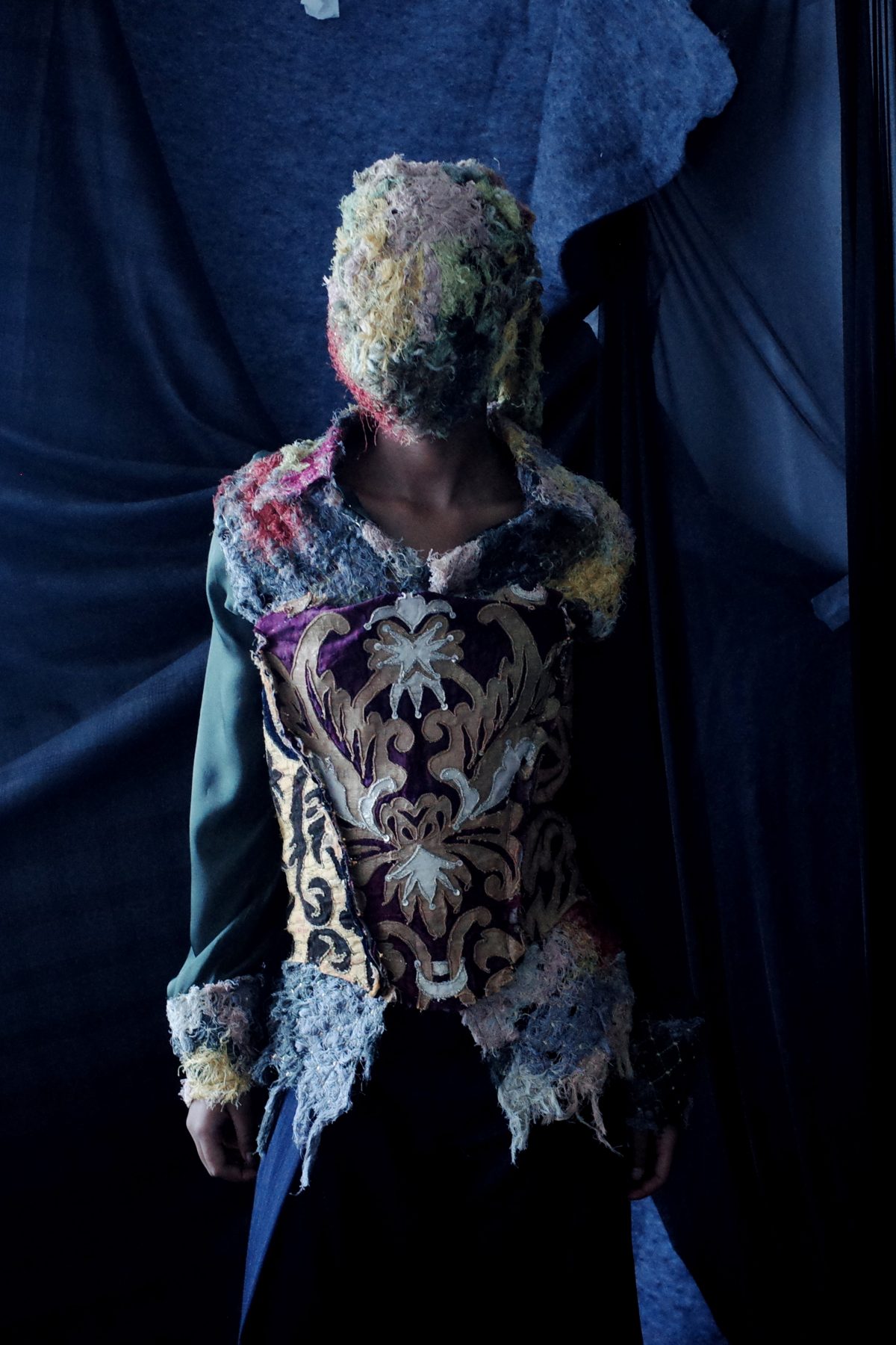 「這場展示是基於葡萄牙的冬至儀式。我將這個異教傳統和圍繞着性別的法,加入我對高級時裝、手工和機械工藝、開衩裙、Zoom 虛擬北京等興趣混合在一起。」