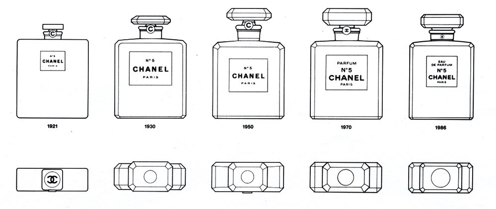 除了前衛而奢華的香水配方,Chanel N° 5 的標新立異亦體現在香水瓶設計上。「Coco Chanel 想要 一個看不見的瓶子。」香水歷史學家 Tilar J. Mazzeo 曾這樣提到。由 Coco Chanel 女士親自設計的第一款 Chanel N° 5 誕生於 1921 年,其外觀與當時流行的華麗風格背道而馳——簡潔的扁平方形瓶身設計沒有一絲多 餘的線條,獨留一張簡潔明瞭的標籤,令注意力回到香味本身。這在當時標新立異的設計思維,正呼應了同時 期興起的現代主義運動(Modernism)。此外,Coco Chanel 女士亦深受藝術家好友畢加索的啟發,因此在 N° 5 於 1921 年的首款以黑色線條描邊的包裝盒設計, 也可見立體主義(Cubism)藝術的影子。普普藝術大師 Andy Warhol 曾在 1959 年創作九幅 N° 5 絲印畫,證明 N° 5 早已超越消費品本身的意義,成為 20 世紀重要的文化符號之一。