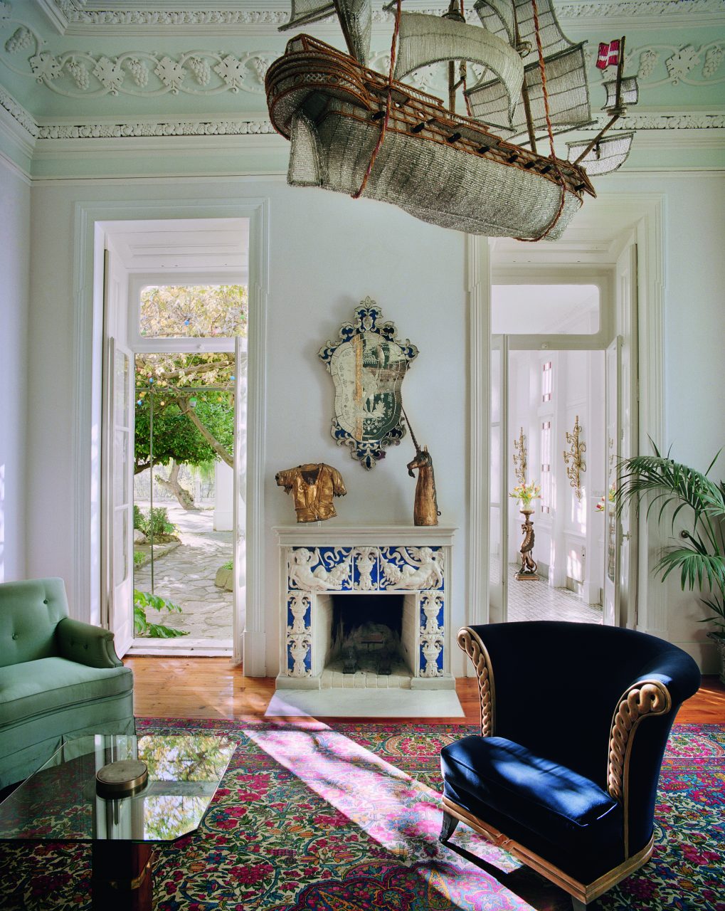 光說漂亮,並不能夠形容這所皇宮,鋪天蓋地的葡萄牙Azulejo式磁磚,令到這間里斯本大宅,成為Instagram的寵兒,三層高的大宅,位於里斯本的Alfama區,能夠看到塔霍河。這棟建築物,可以追溯到十六世紀, 1755年一場地震把它摧毀,一個葡萄牙家庭買下頹垣,後來他們移居到巴西,從事稀有木材生意,他們回來之時,帶回了巴西的美學,「這間屋其實頗為傳統,不過我喜歡它色彩豐富。」Louboutin說,「相比起深沉的葡萄牙木材,這裏的顏色生氣十足,玩味盎然,感覺輕巧得多。」