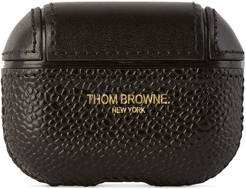THOM BROWNE Black Leather AirPods Pro Case, HKD$3.420 Available at Ssense.com