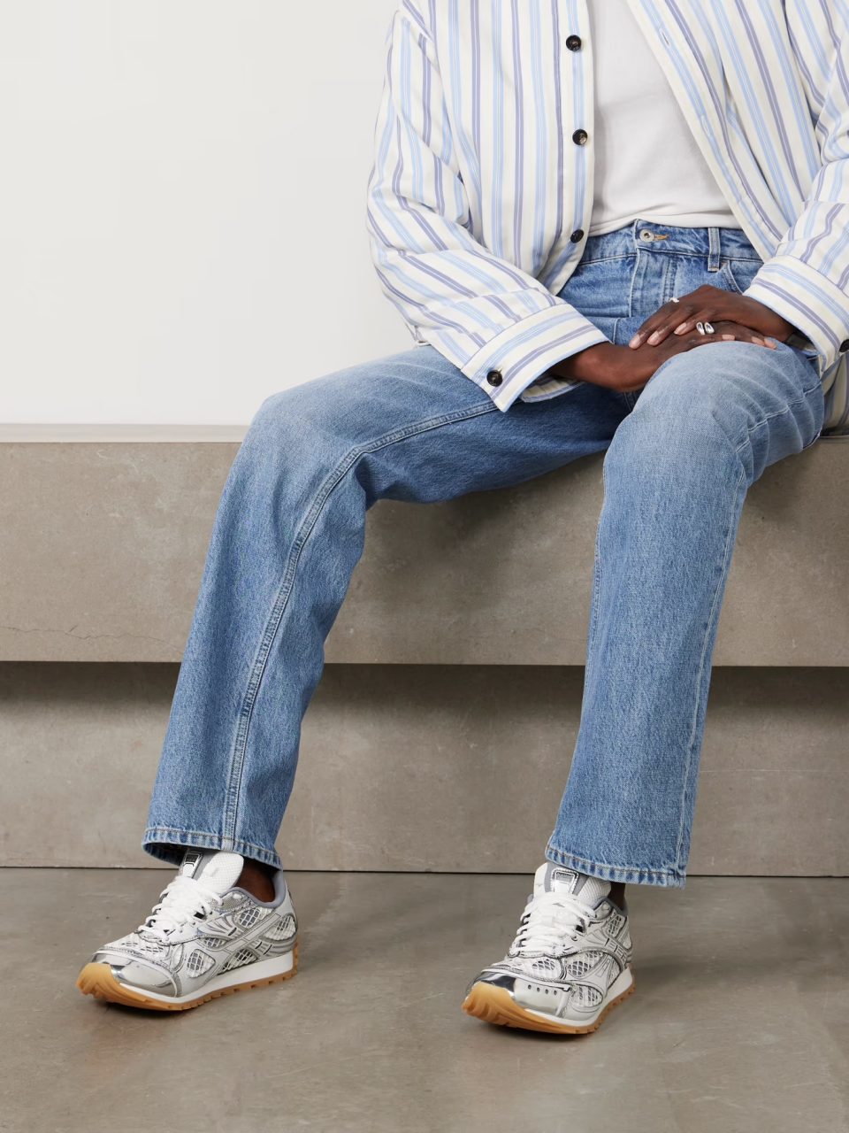 今年許多品牌都推出了金屬風格的款式,有單用銀色來營造金屬氛圍的,有些鞋款則會在鞋身增加一些讓整個鞋子更加閃亮的材質。比如Autry Medalist的Metallic Leather運動鞋就以銀色為主基調,Bottega Veneta Orbit運動鞋也有推出利用閃亮元素打造重金屬感的鞋款。Wales Bonner的重金屬風格運動鞋則將未來主義混合。