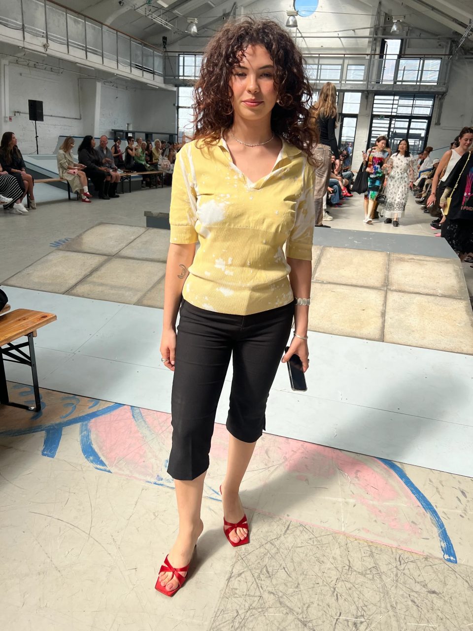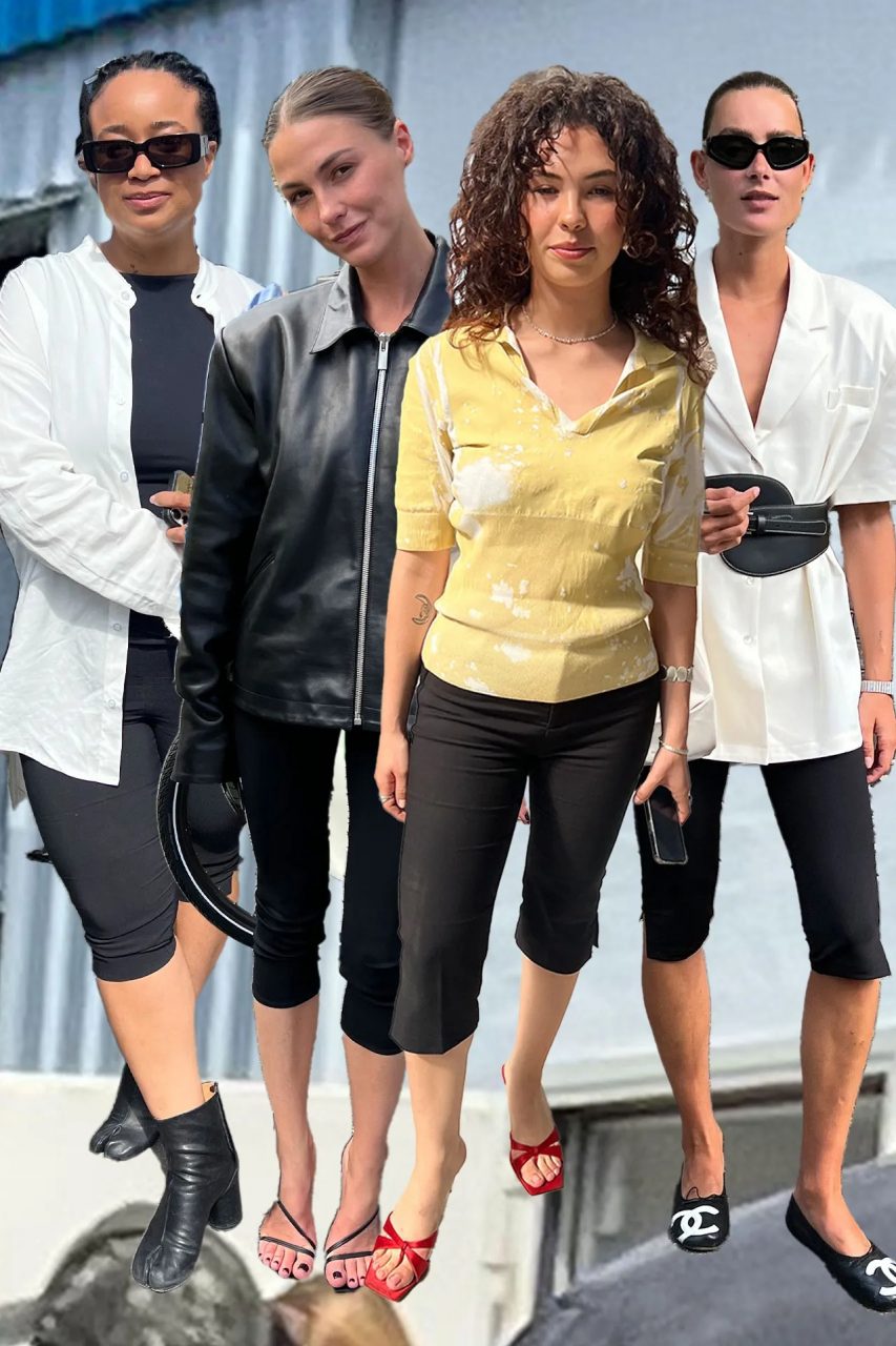 Joy Montgomery看到不是一個,不是兩個,而是至少 10 個人(而且還在增加)穿著這種復古的褲裝。但真正令她震驚的是,沒有兩個女人穿著Capri Pants的方式完全相同。從造型角度來看,極簡主義的單色搭配似乎是一種流行的選擇,但她也發現了運動款Polo上衣、透視襯衫、疊搭襯衫和皮革外套,以及你能想像到的各種鞋子,從高跟人字拖到芭蕾舞鞋。如果這還不夠,七分褲還多次出現在天橋上,如Opera Sport 和 A.Roege Hove,由此表明這款褲子將在今年餘下時間一直流行到2025年夏季。