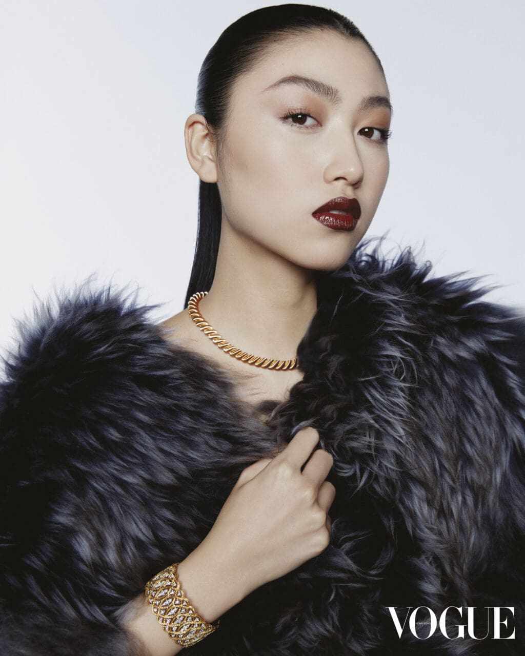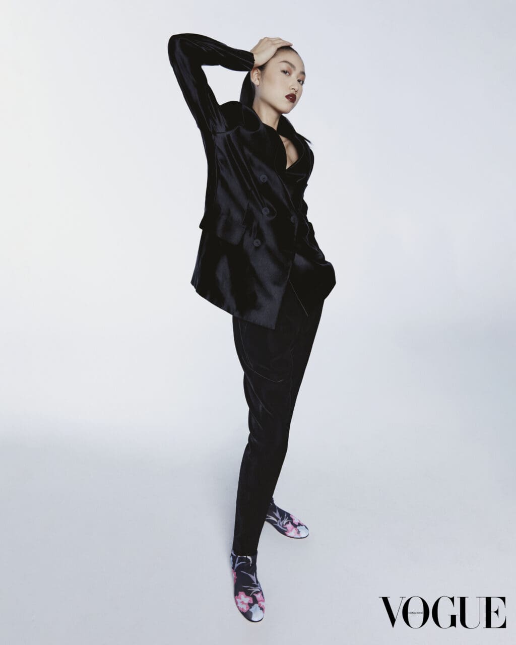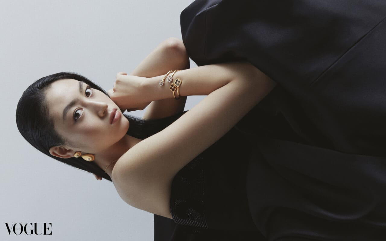 再次登上封面,對我而言是一份極大的榮幸與感激。我剛剛告訴我母親,這對我來說是一個充滿意義的時刻。當我14歲時拍攝了第一次的《VOGUE》Hong Kong封面,如今我已經19歲,我學習了許多,改變了許多,積累了豐富的人生經驗,這些經驗塑造了今日全新的我。看着這兩次拍攝的照片,彷彿看到了自己成長的影子。其中一個最難忘的時刻是在一把形狀奇特、不穩定的椅子上拍攝。我身穿一襲巨大的裙子,站在椅子上單腳站立,踮着腳尖,另一腿伸出。保持平衡非常具挑戰性,但我對自己說:「無論如何,我必須做到,無論要拍多少次、拍多久,我都要做到最好。」