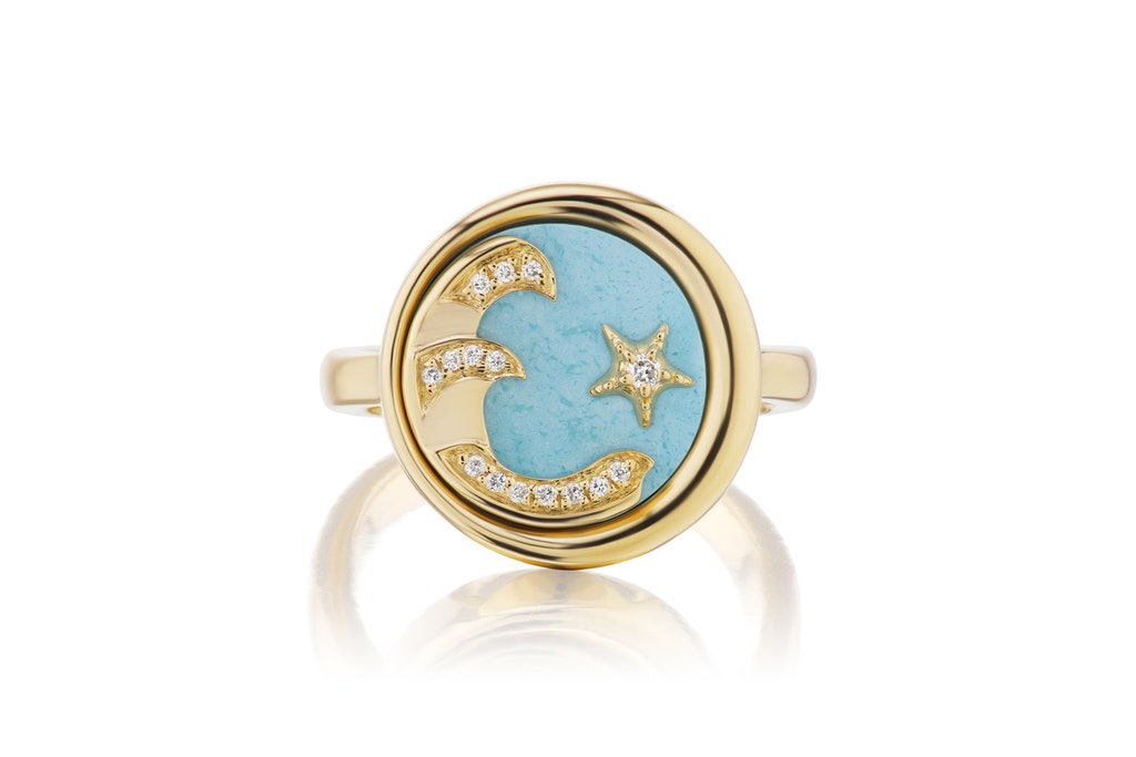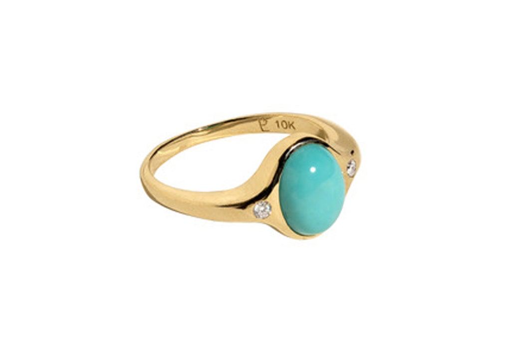 14K黃金戒指,鑲嵌綠松石和鑽石,695英鎊,在Pamelalove.com有售。