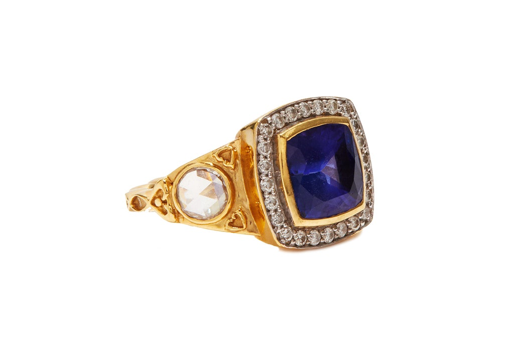 鑽石、坦桑石和18K金戒指,6500英鎊,在Matchesfashion.com有售。