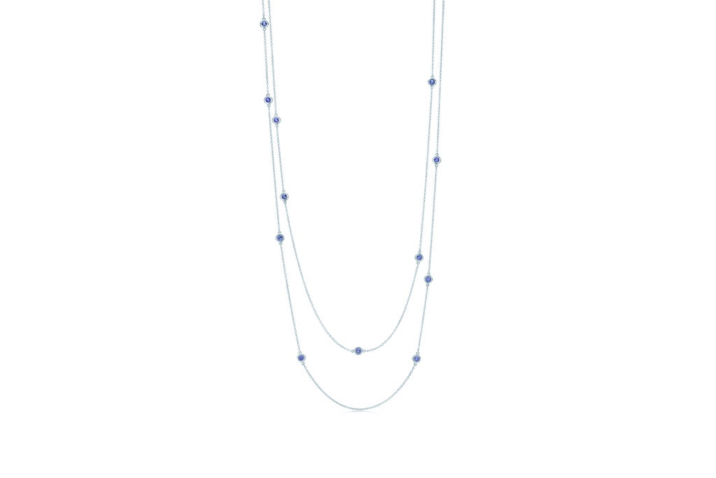 Elsa Peretti純銀項鍊,鑲嵌12顆坦桑石,1925英鎊,Tiffany.co.uk有售。