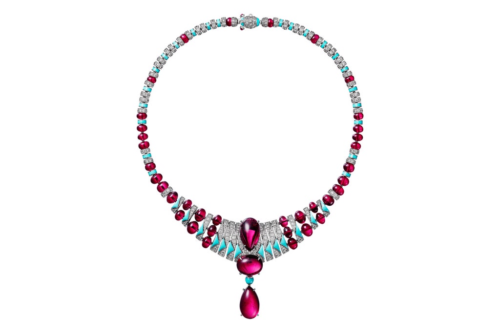 紅寶石、綠松石和鑽石 “Tovel “項鍊,POA英鎊,在Cartier.com有售。