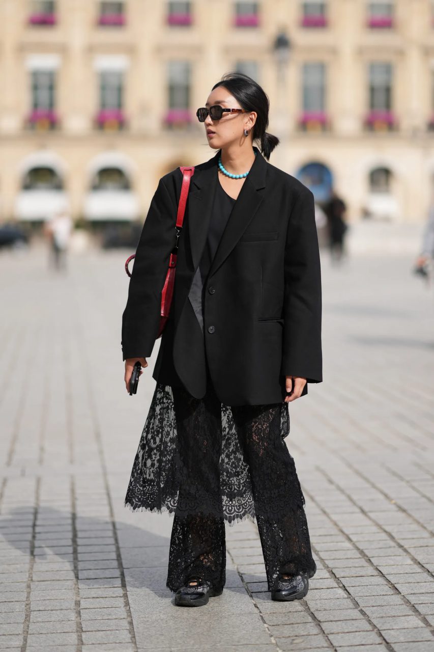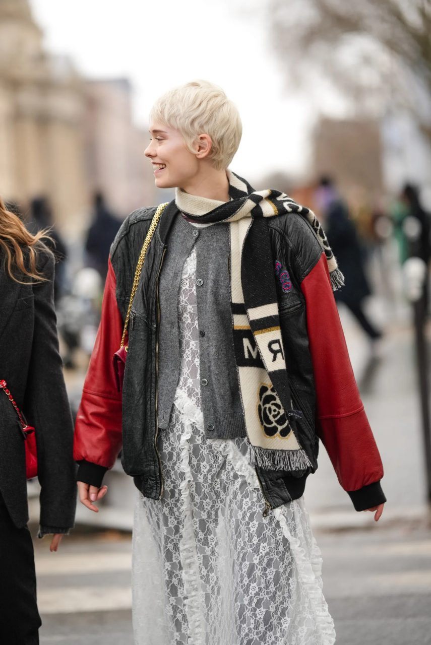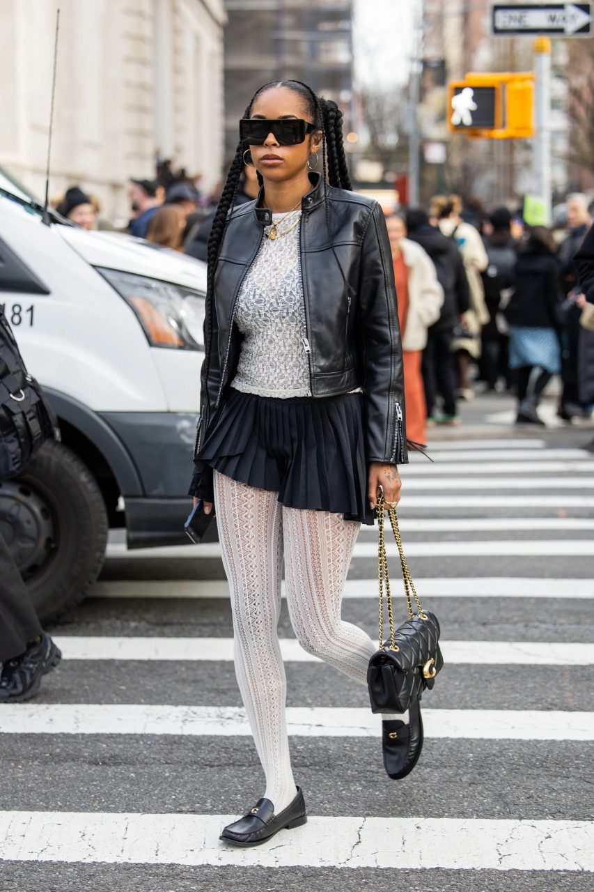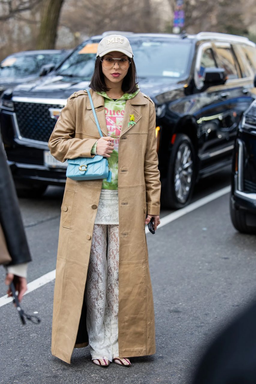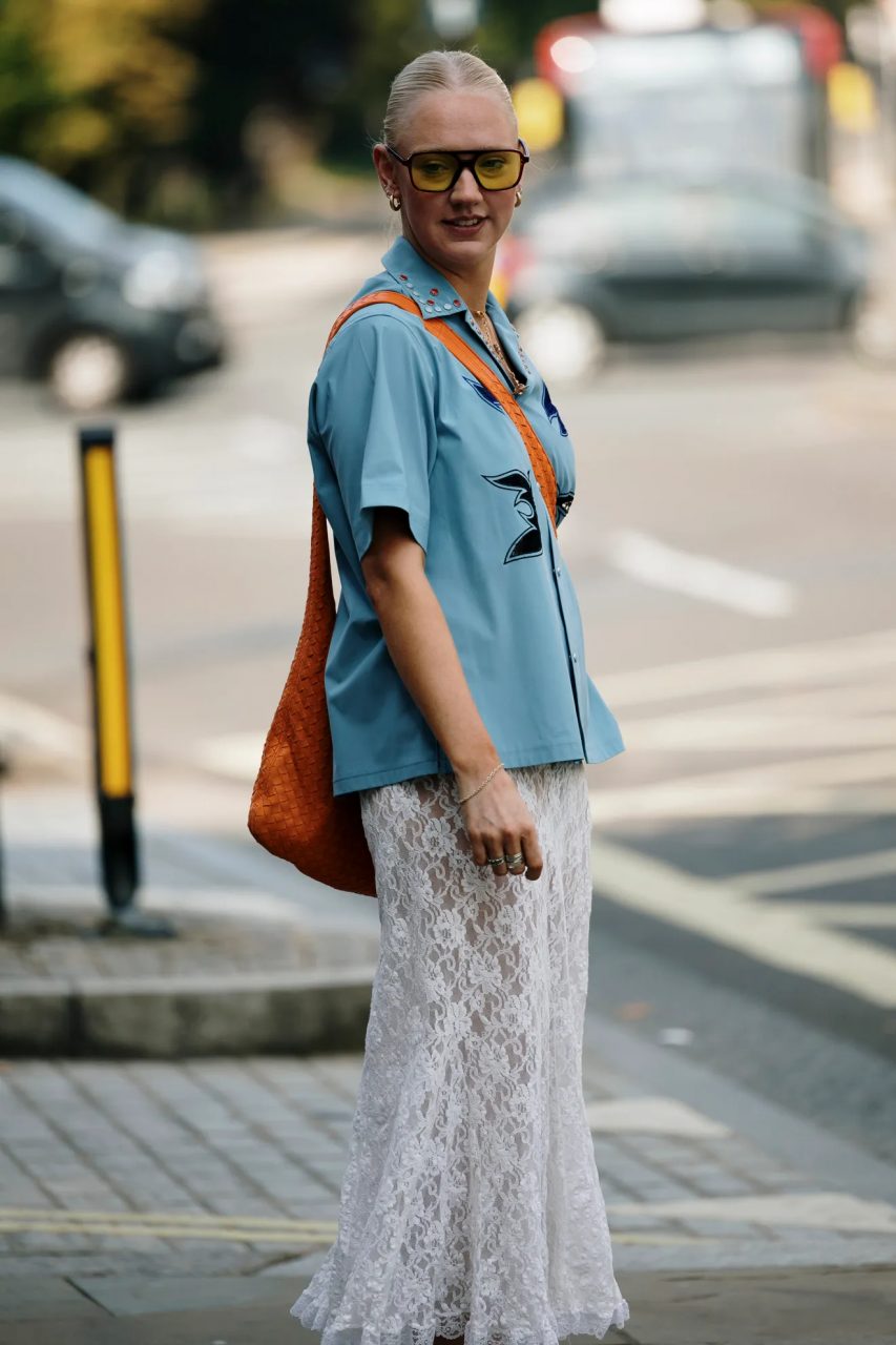 2024年的喱士潮流與2023年的「透視裙」相似——一條喱士中長裙是再現那種「裸露」造型的簡單方法,正如Erdem和Carolina Herrera的2024年春夏時裝騷上所展示的一樣。不過,還有很多其他方式可以展示這種奇特的面料,不僅限於內衣服飾的時尚。喱士連衣裙搭配牛仔褲的造型似乎是FROW-ers(時尚界的前排觀眾)中的熱門選擇,通常搭配運動風外套和運動鞋。喱士也非常適合進行層疊搭配,我們喜歡將喱士背心套在長袖上衣上,最好選擇一種有趣的色調,打造出多元紋理的獨特造型。