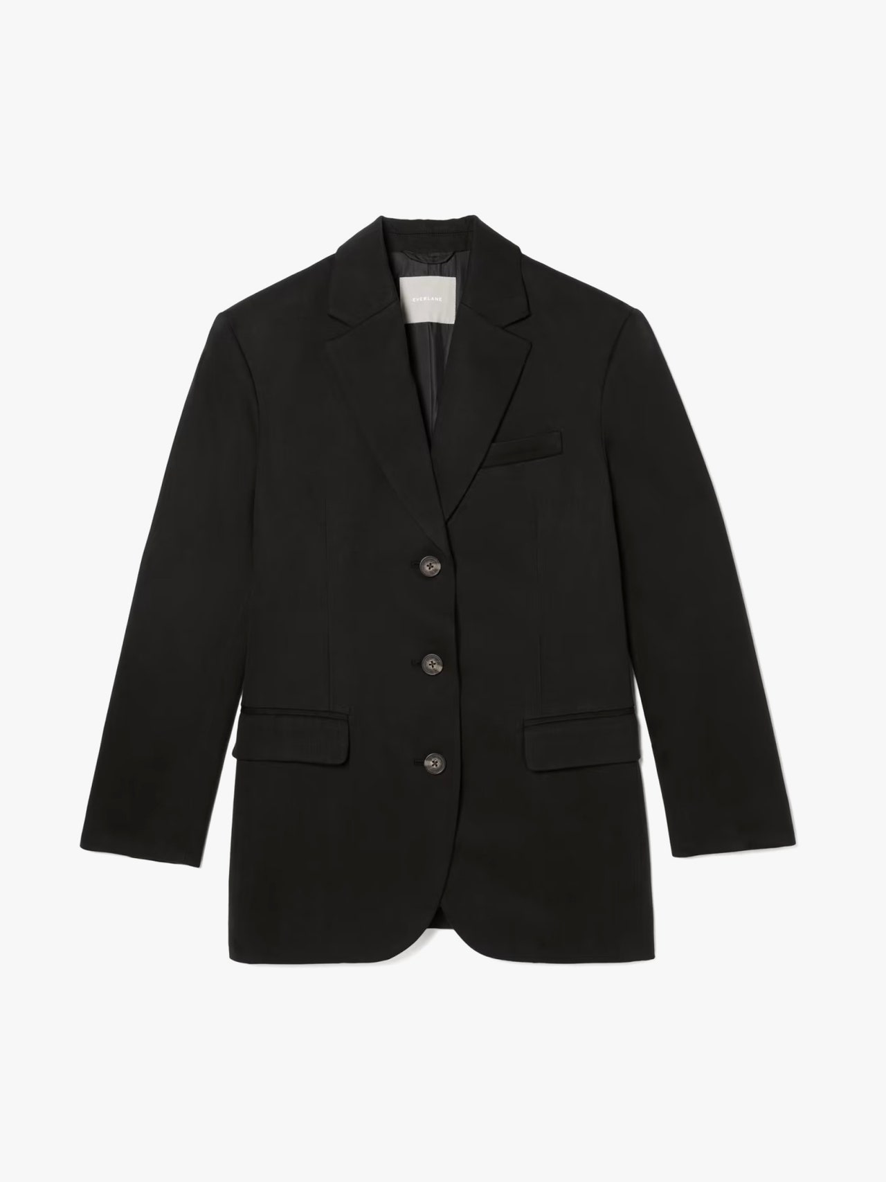 Everlane 這款 80 年代風格西裝外套,採用略微大廓形剪裁,看起來非常完美。配搭時尚的黑色長褲,打造簡潔風格。