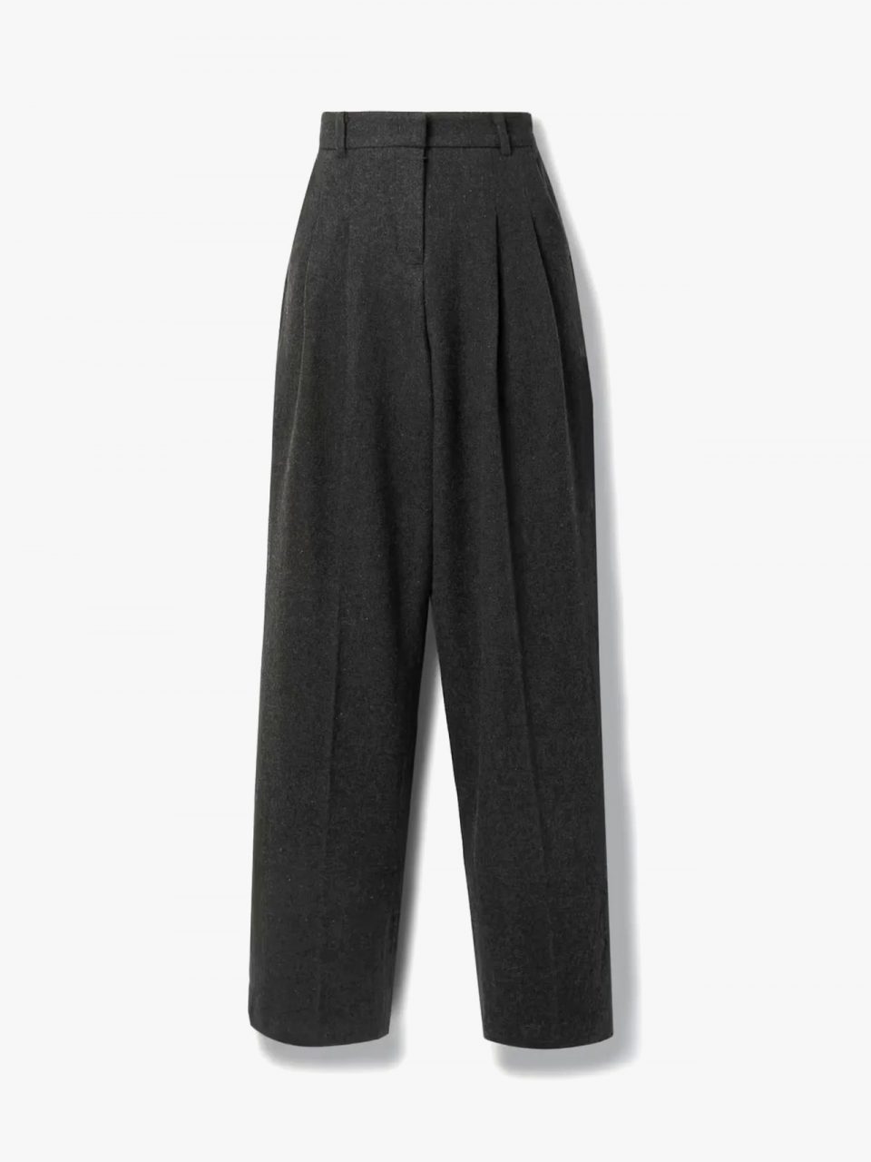 如果想穿出現代感工作裝,請選擇寬鬆版型的褲子,例如 The Frankie Shop 的這款褶皺褲, 深灰色水洗是對經典黑色或卡其色的替代。