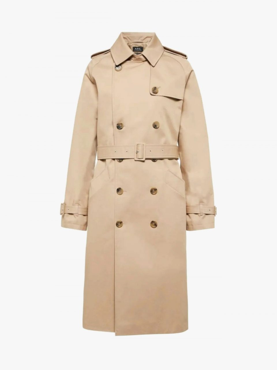 在過渡期衣櫥中,沒有什麼比永不過時的風衣更重要的了——A.P.C. 的束帶米色風褸既傳統又出眾。