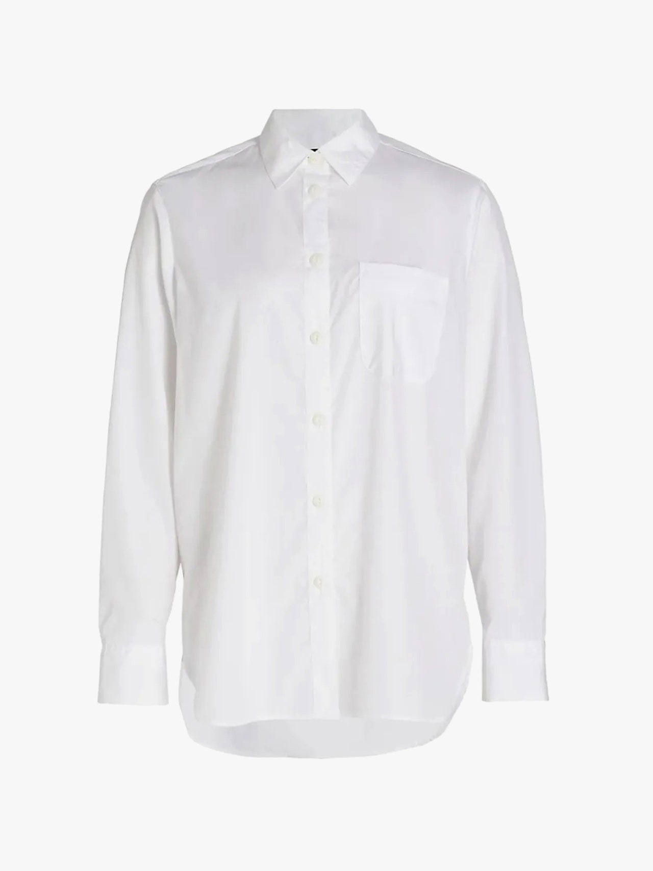 類似於一條漂亮的牛仔褲或一件普通的白色 T 恤,清爽的鈕扣式襯衫是每個衣櫥都應該擁有的另一件基本服裝單品。 這款來自 Rag & Bone 的純白色恤衫是完美的選擇。