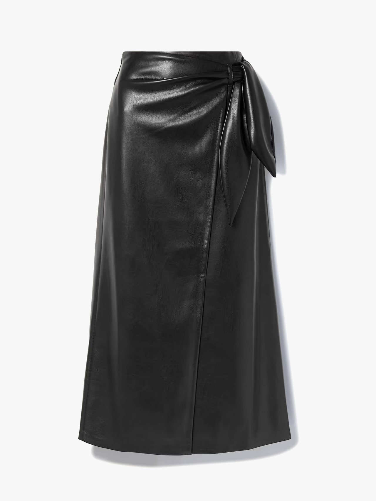 時尚的皮革中長裙是從時裝騷天橋到街頭都可見的單品,Nanushka 的 Ama 皮革中長裙如同經典的裹身裙,但帶有現代元素,深受時尚寵兒的喜愛。