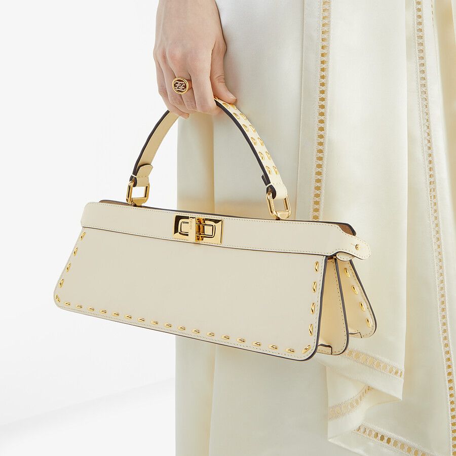 由品牌設計師 Silvia Venturini Fendi 設計的 Peekaboo 系列,自 2009 登場後一直成為品牌最深植人心的經典款。品牌在每一季都為 Peekaboo 系列注入全新細節,像去年便推出了名為「ISeeU」的 Peekaboo 袋款,有着全新的「手風琴摺」設計。今年秋冬,Fendi 再將 ISeeU 迎來窄長版本的 ISeeU Stretch,仿似將梯形輪廓的皮革手袋被壓扁拉長,手袋外形變得更俐落輕巧。
